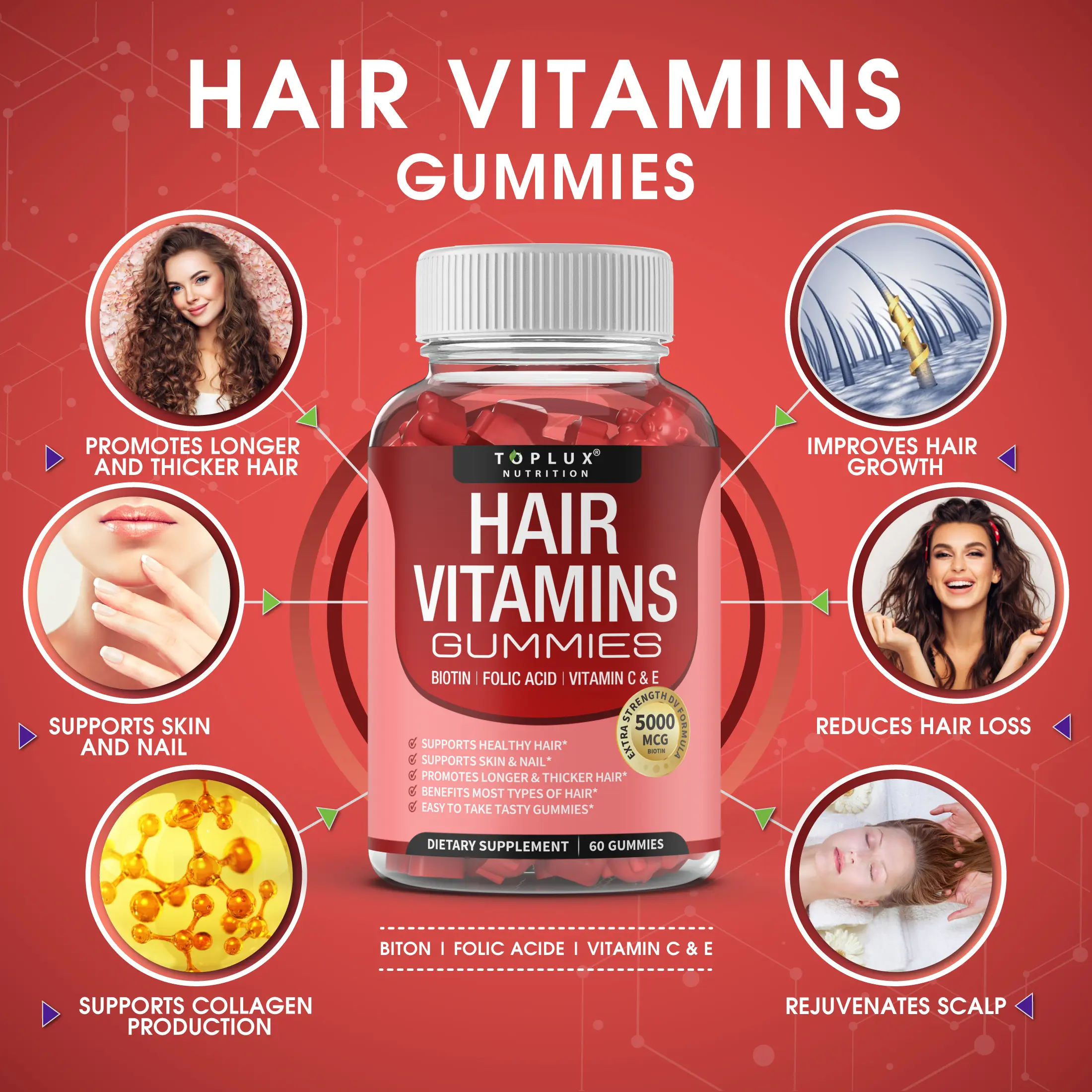 Just started using the Toplux Hair Vitamins Gummies and they actually taste good. They have 5000 mcg of biotin, plus folic acid and vitamins C and E. My hair feels stronger, my nails are growing faster, and theyâre super easy to take. If you hate swallowing pills, these are a great option. Simple, effective, and part of my daily routine now.