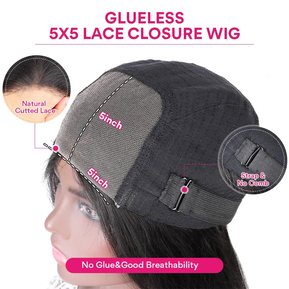 Straight, 5x5 Glueless Lace Wig, 30 Inch