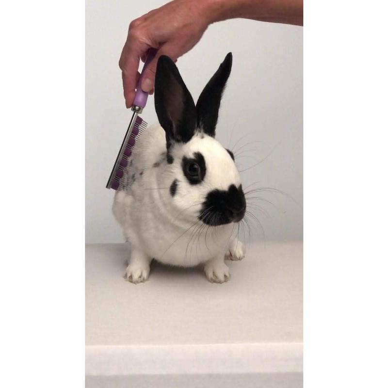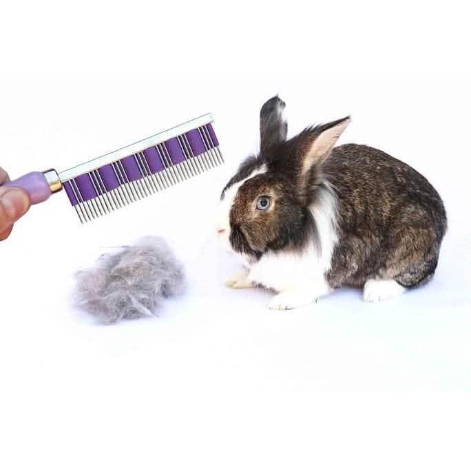 Bought for our two Mini Rex boys. It’s okay but can’t use solely on them. Proper angle while combing is important, not comfortable with ours, as I think just feels awkward. We use in combination with a soft combed bunny brush ~ alternate between the two. I think this comb better for a larger rabbit, or rabbit with thicker (more) hair.