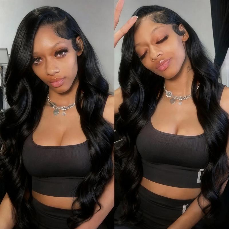Bling Hair Body Wave Wigs Human Hair 13x6 Real Frontal Wig 180 Density HD Transparent Lace Front Wigs Human Hair Pre-Plucked Tangle-Free Natural Black for Women