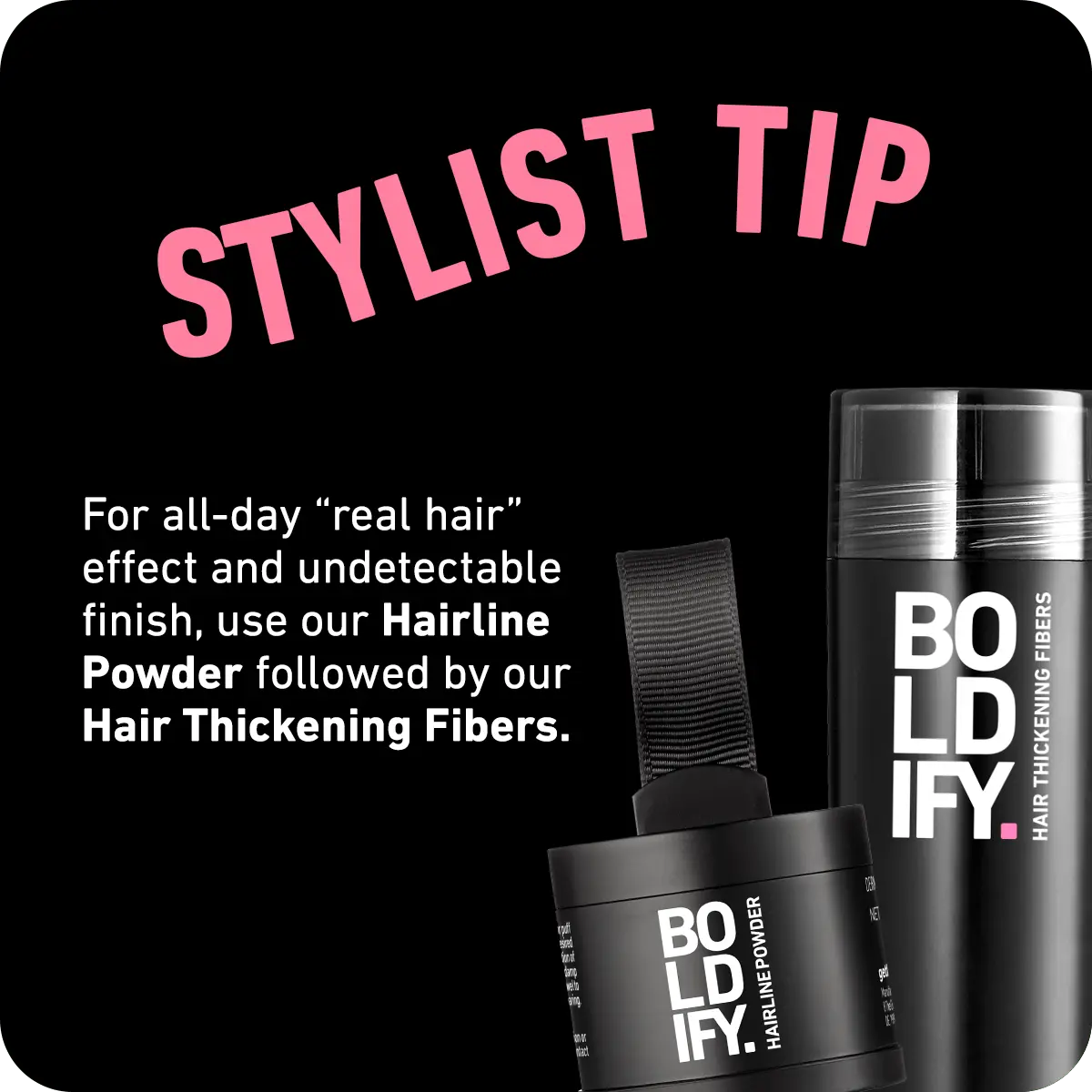 Love this hair product from boldify. It’s prefect an hides my gray an my balding spots. An u can’t tell it looks like my hair an it’s perfect. Thnk u boldify