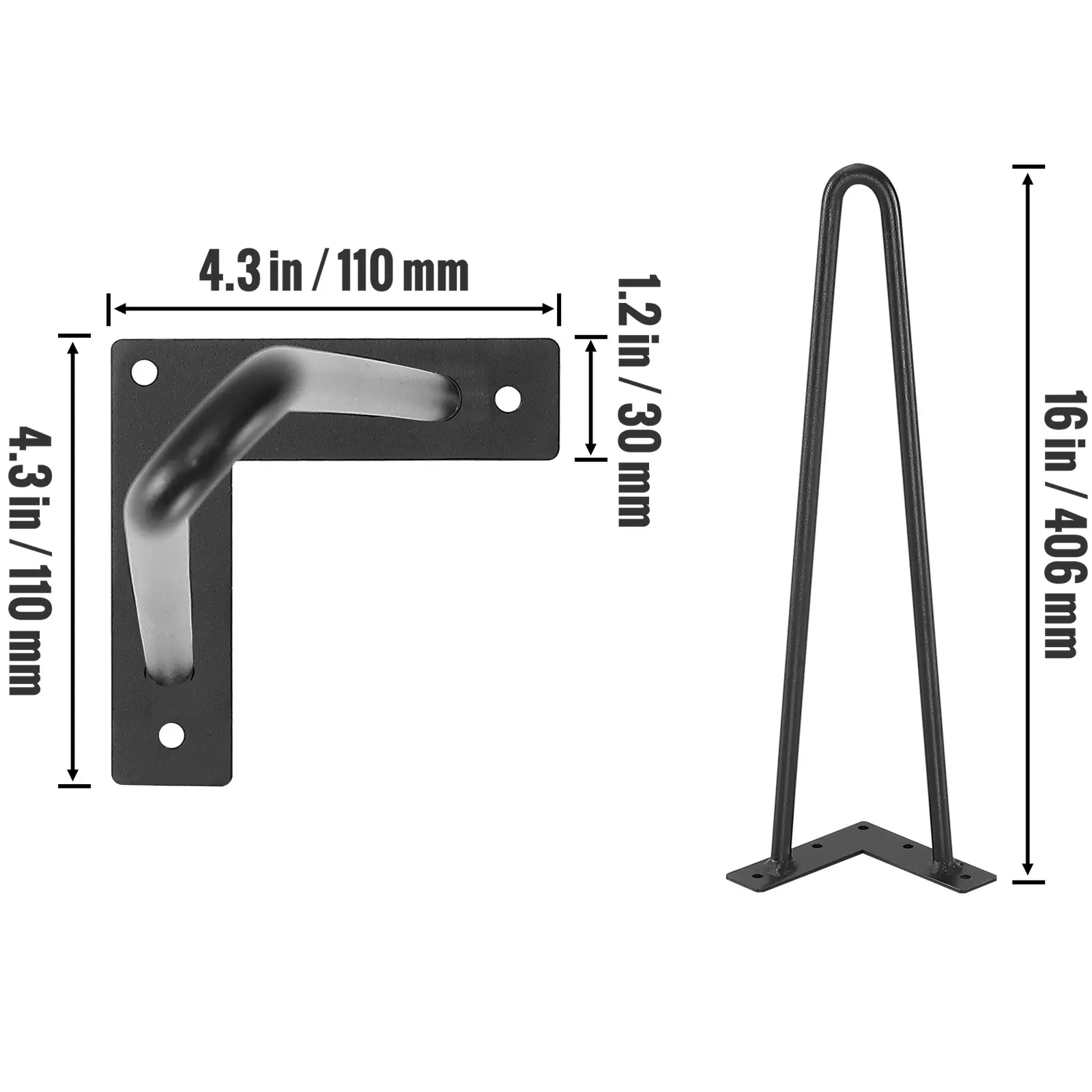 • Exceptional Load Capacity: These 15.98-inch three-rod table legs are made from robust 1/2-inch solid steel, offering exceptional strength and durability. With a 4.3-inch welded mounting plate, they're stronger than standard joints, greatly improving load-bearing capacity and structural integrity.