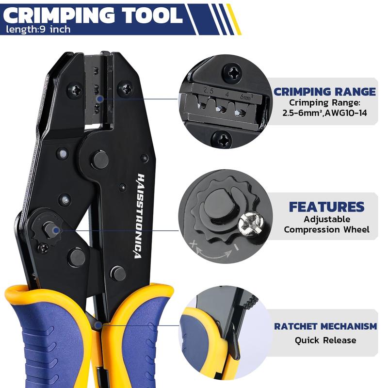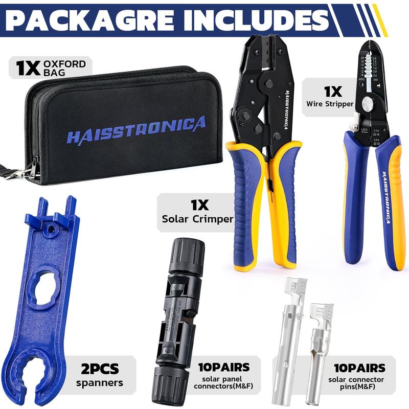 5. haisstronica MC4 Crimping Tool Kit, 15PCS Solar Crimper Tool Set with Stripper, 10 Pairs Solar Connectors AWG14-10(2.5/4/6mm²) and Spanners for Solar Panel PV Cable Installation
