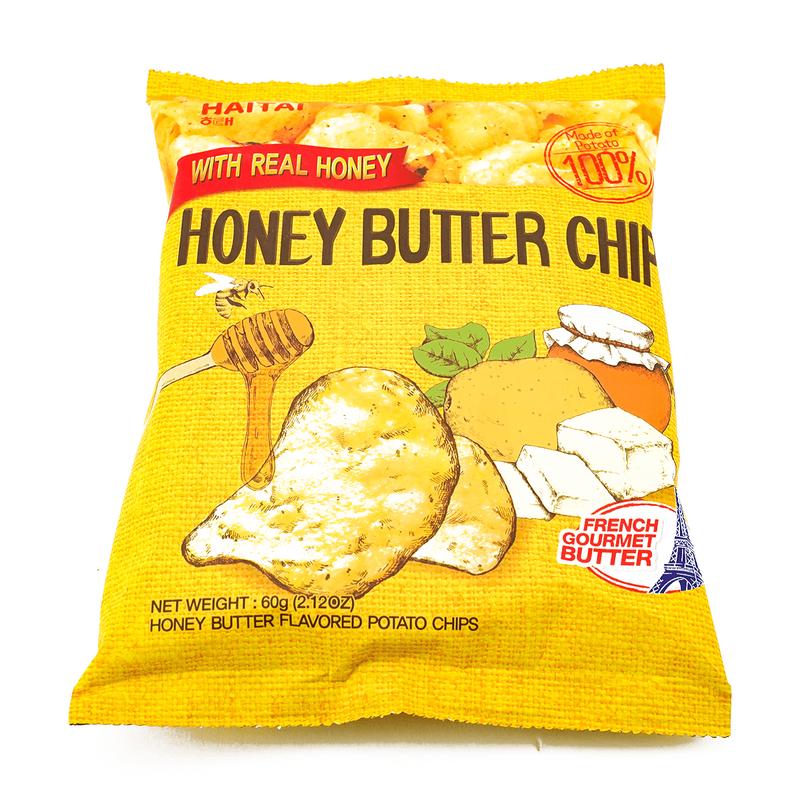 Indulge in the HAITAI Honey Butter Potato Chips. Each pack weighs 60g, featuring real honey and mixed edible oil. These irresistibly crispy chips are ready to eat, making them a perfect snack. 🍟