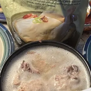Samgyetang is a popular dish to eat in Korea during the summer. It’s a whole (small) chicken served to you in a boiling bowl. It also have rice, ginseng, garlic, and jujube. It’s recommended to add salt and black pepper to your taste. My review of this instant version is: 1. The meat was very tender and the broth was not overly salty. 2. Easy to prepare! 3. A healthy meal compared to other instant foods. Highly recommended for those who want non spicy Korean foods or looking for healthier meal alternatives.  What I ate: 1 pack of samgyetang (Korean ginseng chicken) Kimchi Black pepper & salt #foodie #ginseng #chicken #samgyetang #readytoeat #easymeal #koreanfood