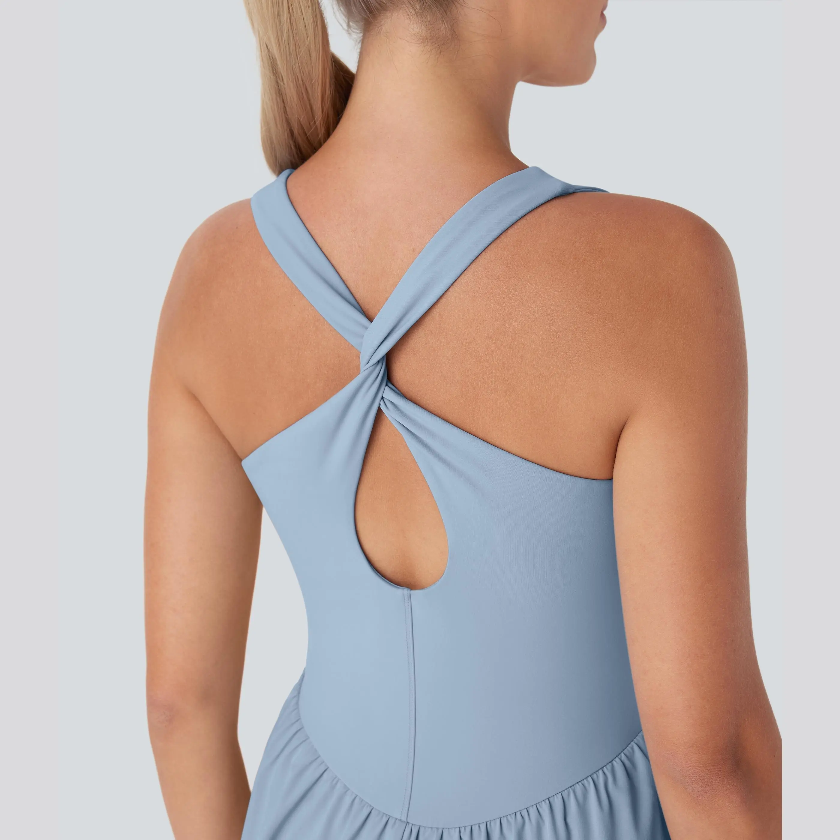 5. Halara Breezeful Backless Corset 2-in-1 Pocket Mini Quick Dry Flowy Pickleball Active Dress-D/DD/DDD/F Cups