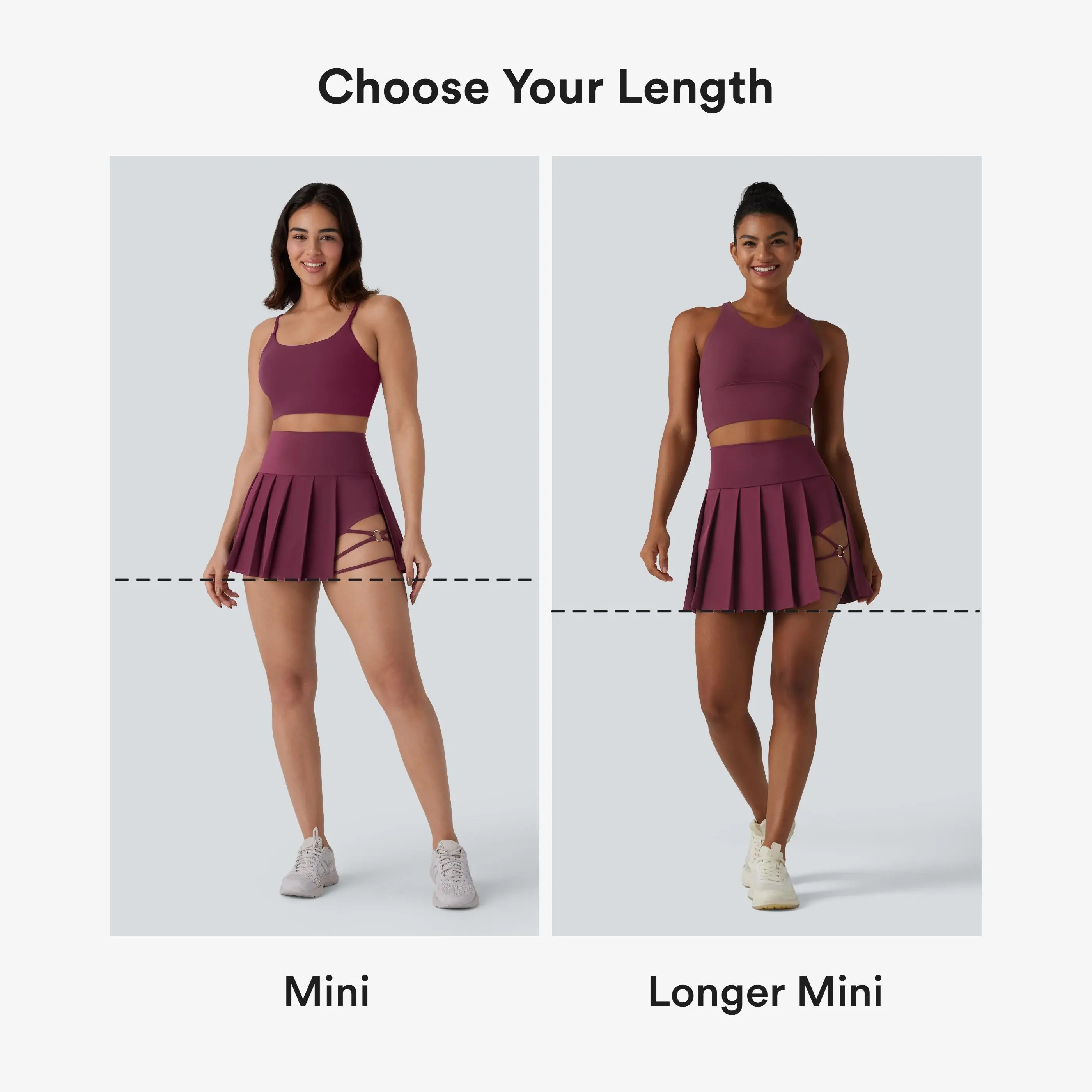 ·Mini-length design that hits right at the thigh.