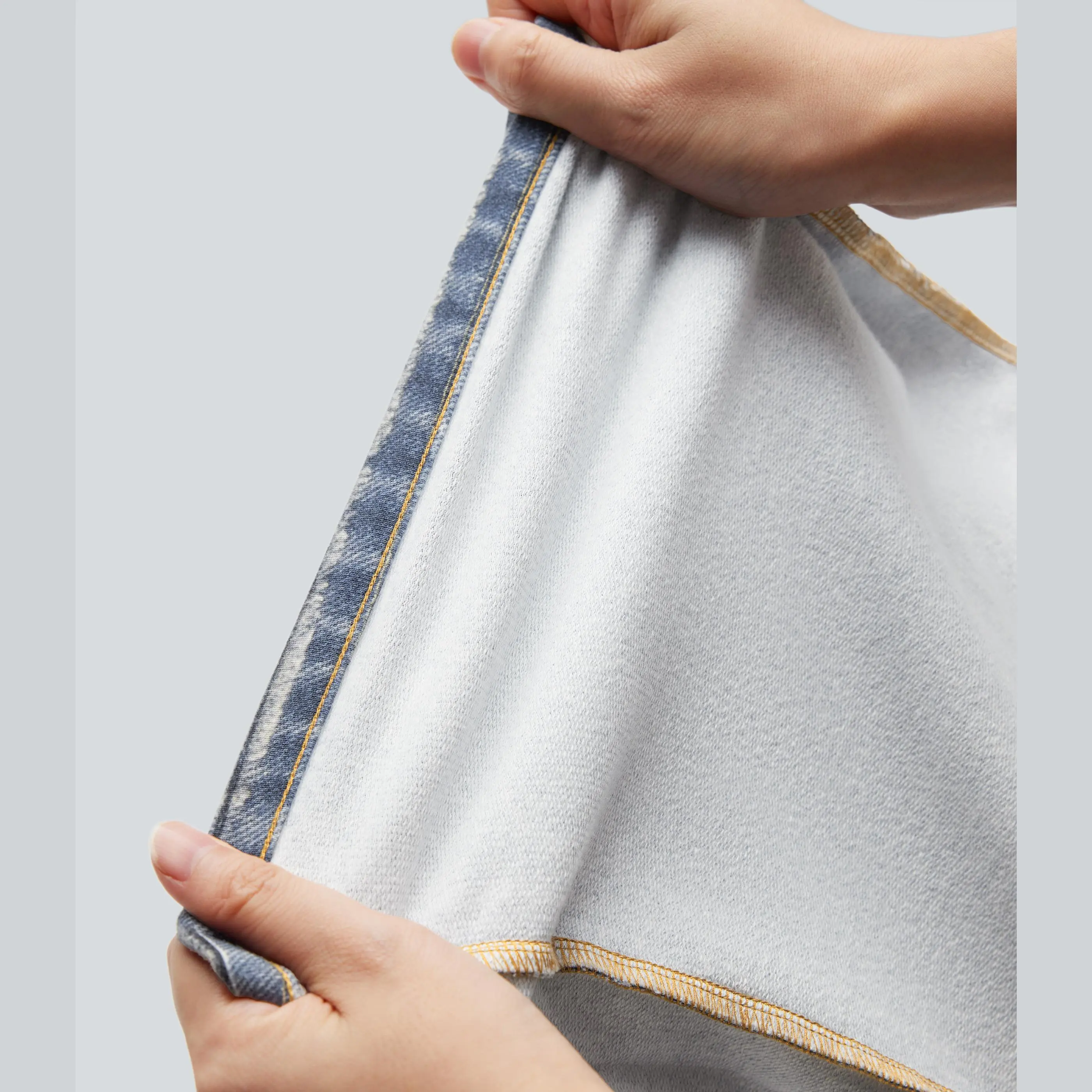 ·Features: Mid waist designs for easy wearability. Denim print gives you stylish comfort in a jean-textured look. Four-way stretch fabric offers ease of movement and durable wearability.