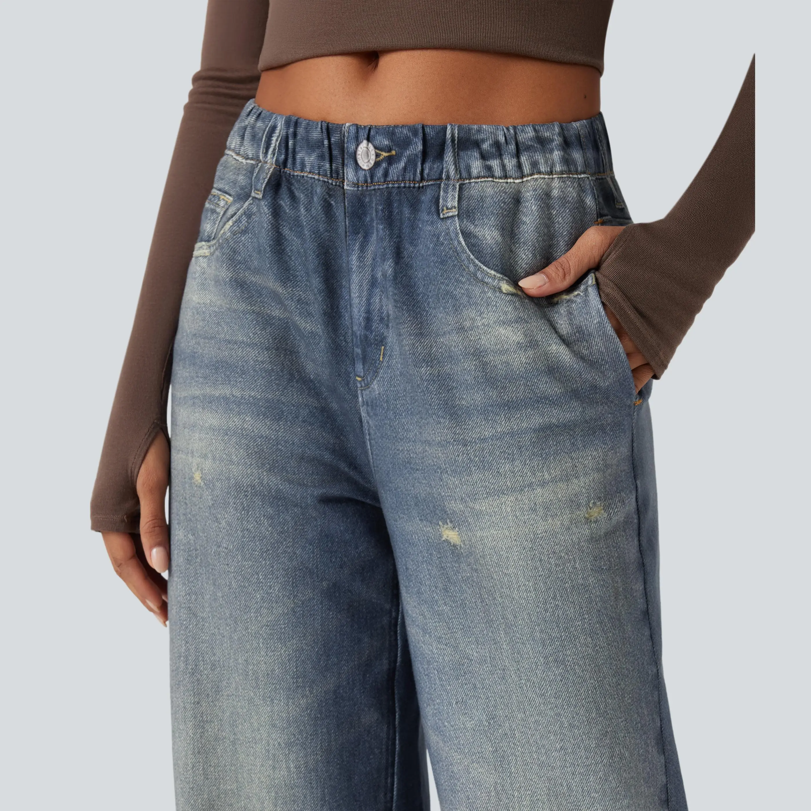 Halara Mid Rise Denim Print Casual Jeans with Pockets