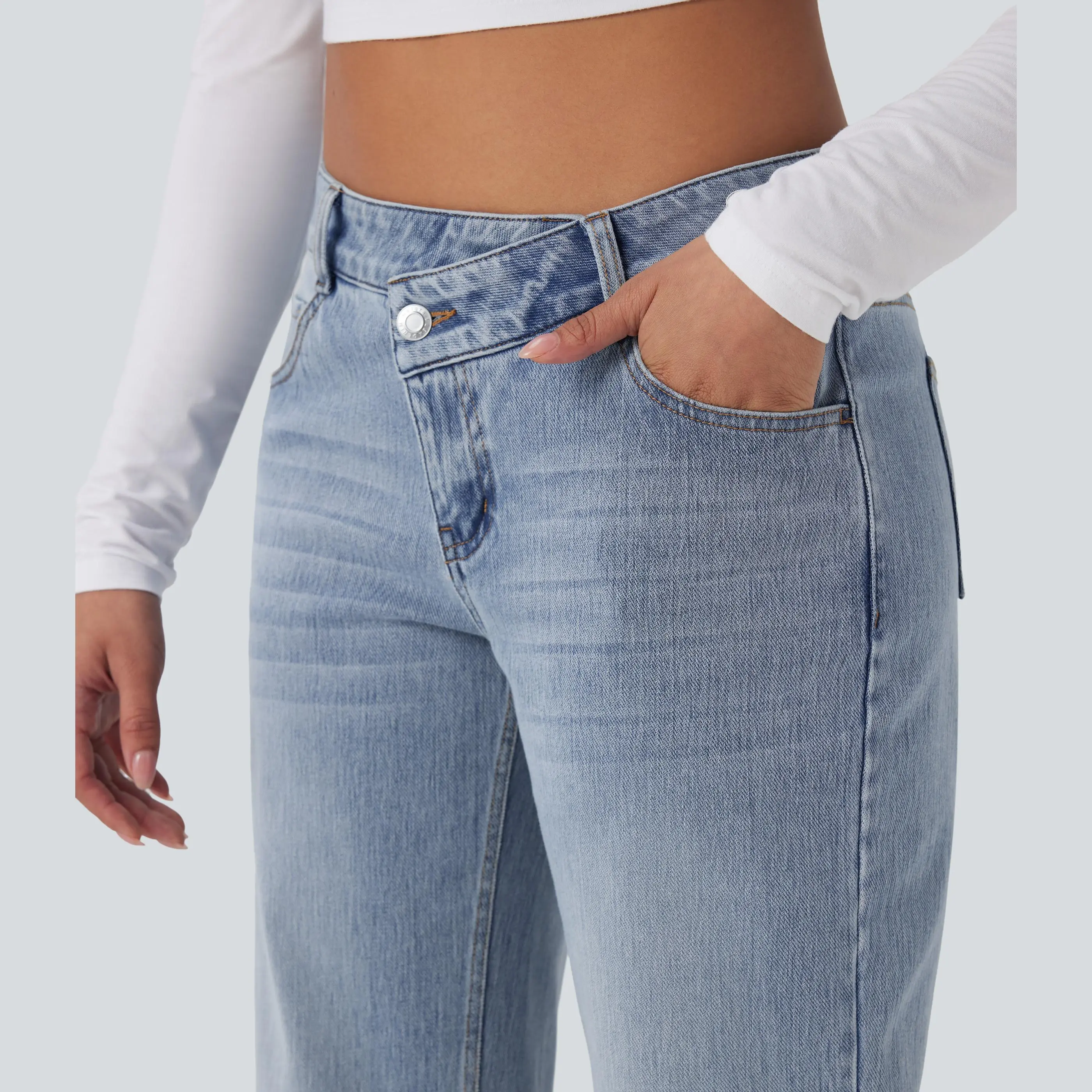 Love these jeans & being straight leg but not tight on my legs is even better!!! I have had 9 abdominal surgeries the A symmetrical button is life changing! I’ve replaced all my jeans with these.