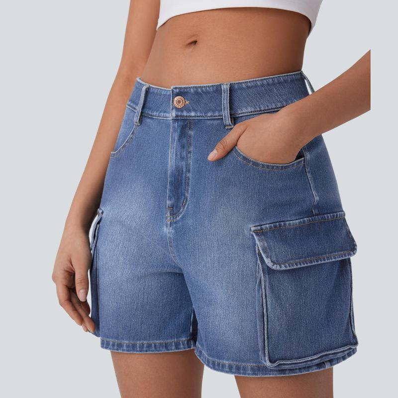 5. Halara Flex Low Rise Multiple Pockets Washed Stretchy Knit Denim Casual Cargo Shorts