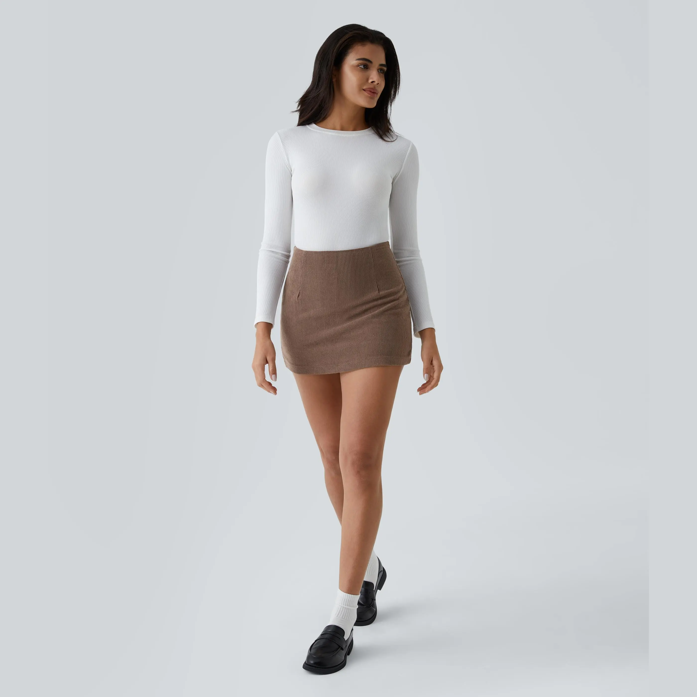 Halara High Waisted 2-in-1 A Line Mini Corduroy Casual Skirt