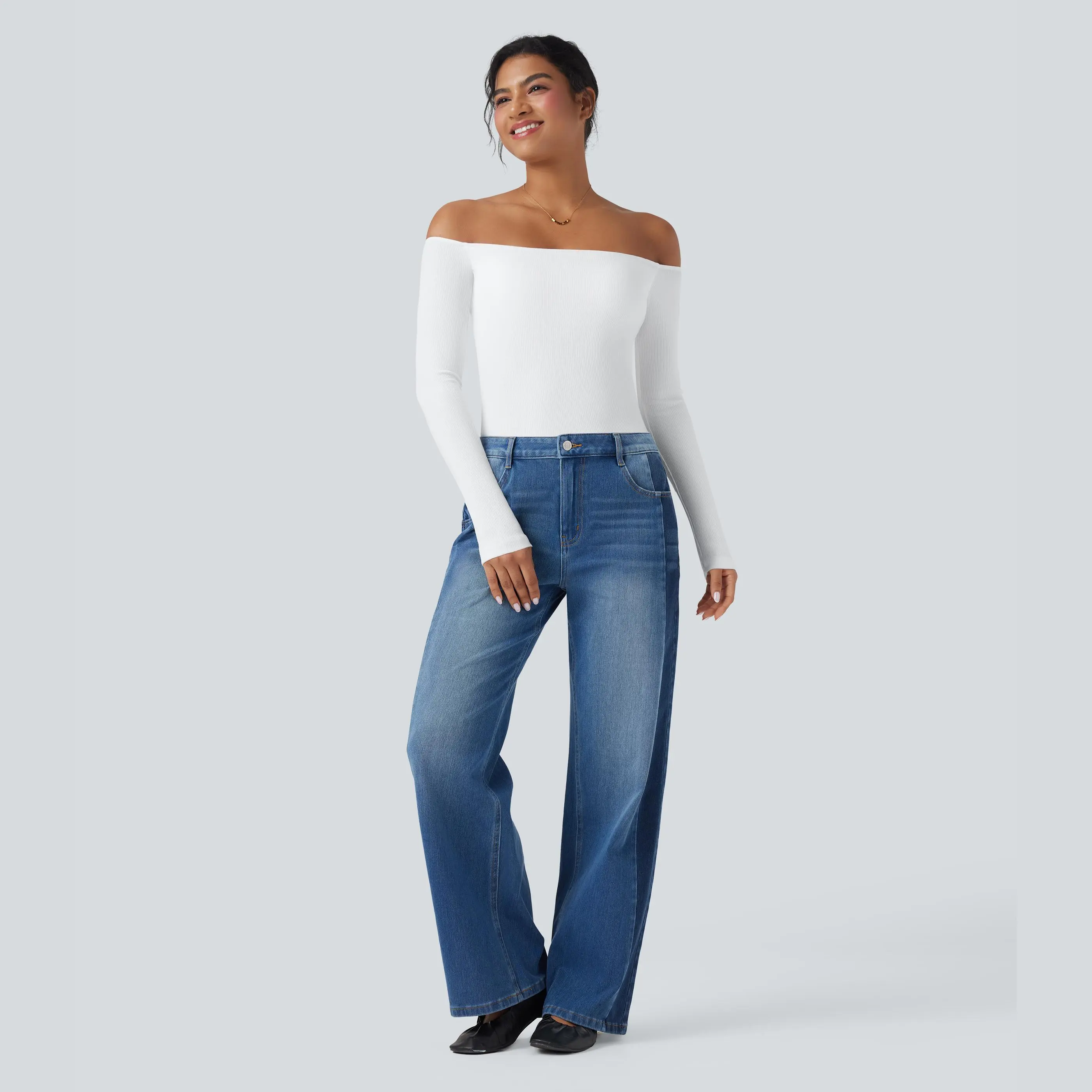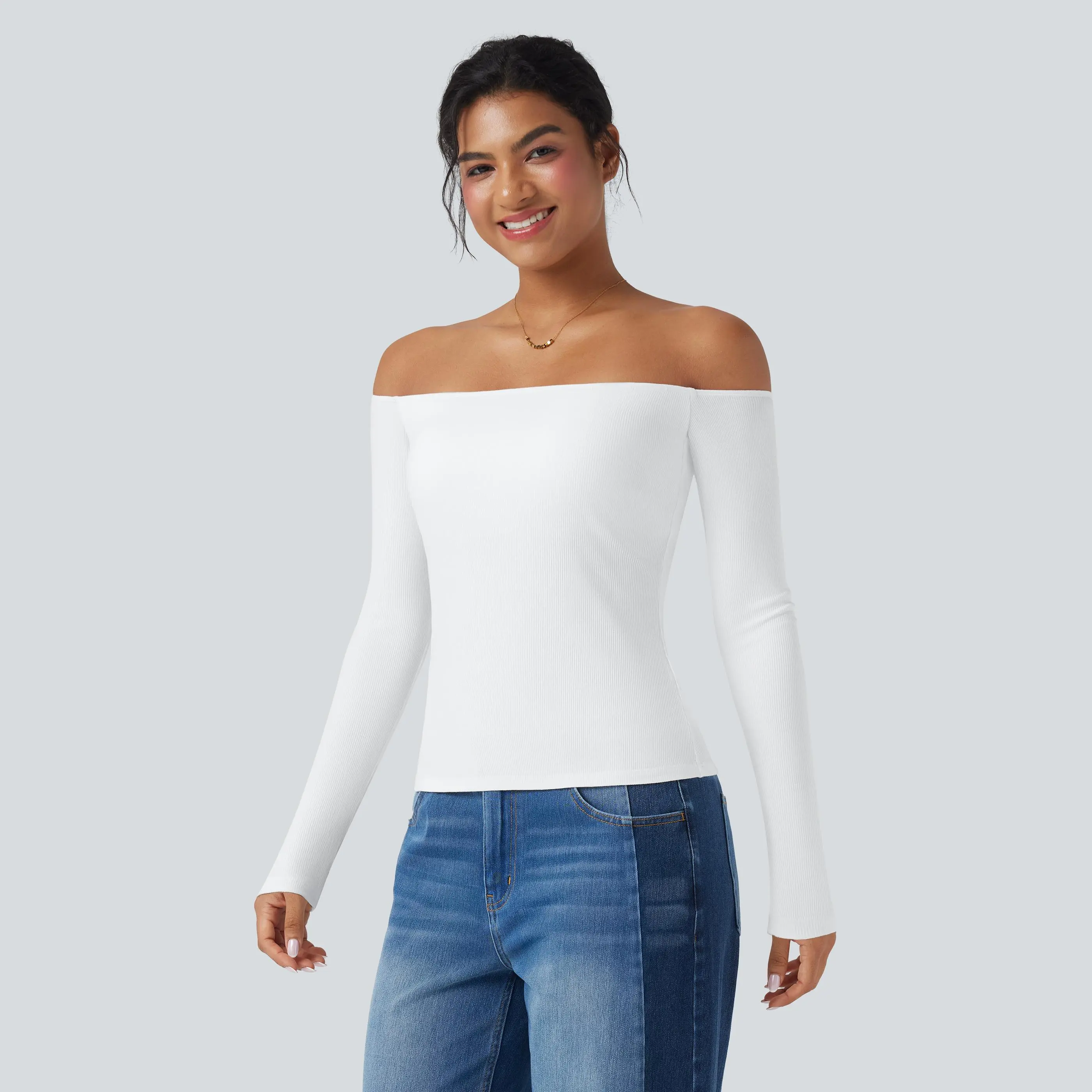 Super cute top! I just don't like it on my shoulders..I had gotten the wrong one! I meant to get the other one that had one shoulder and it was looser. But this top is super cute! I'm just not there yet!