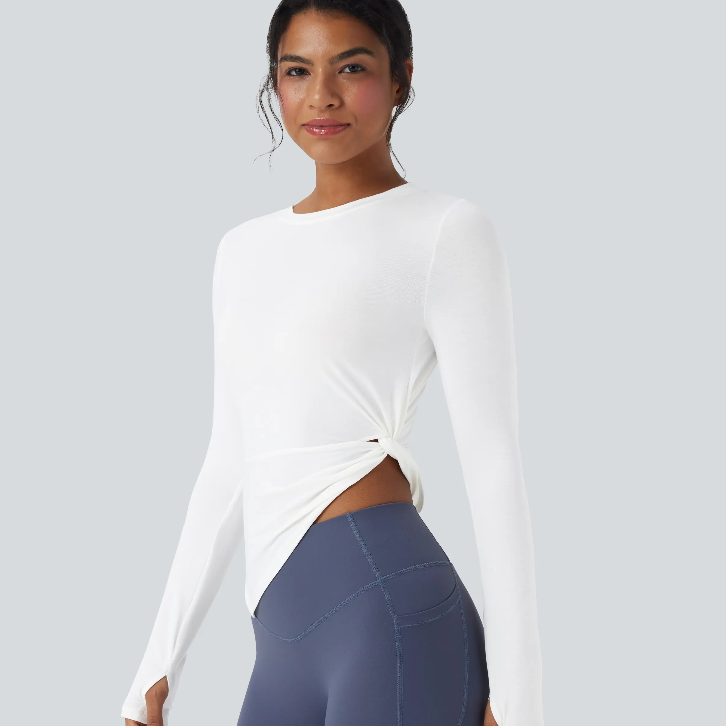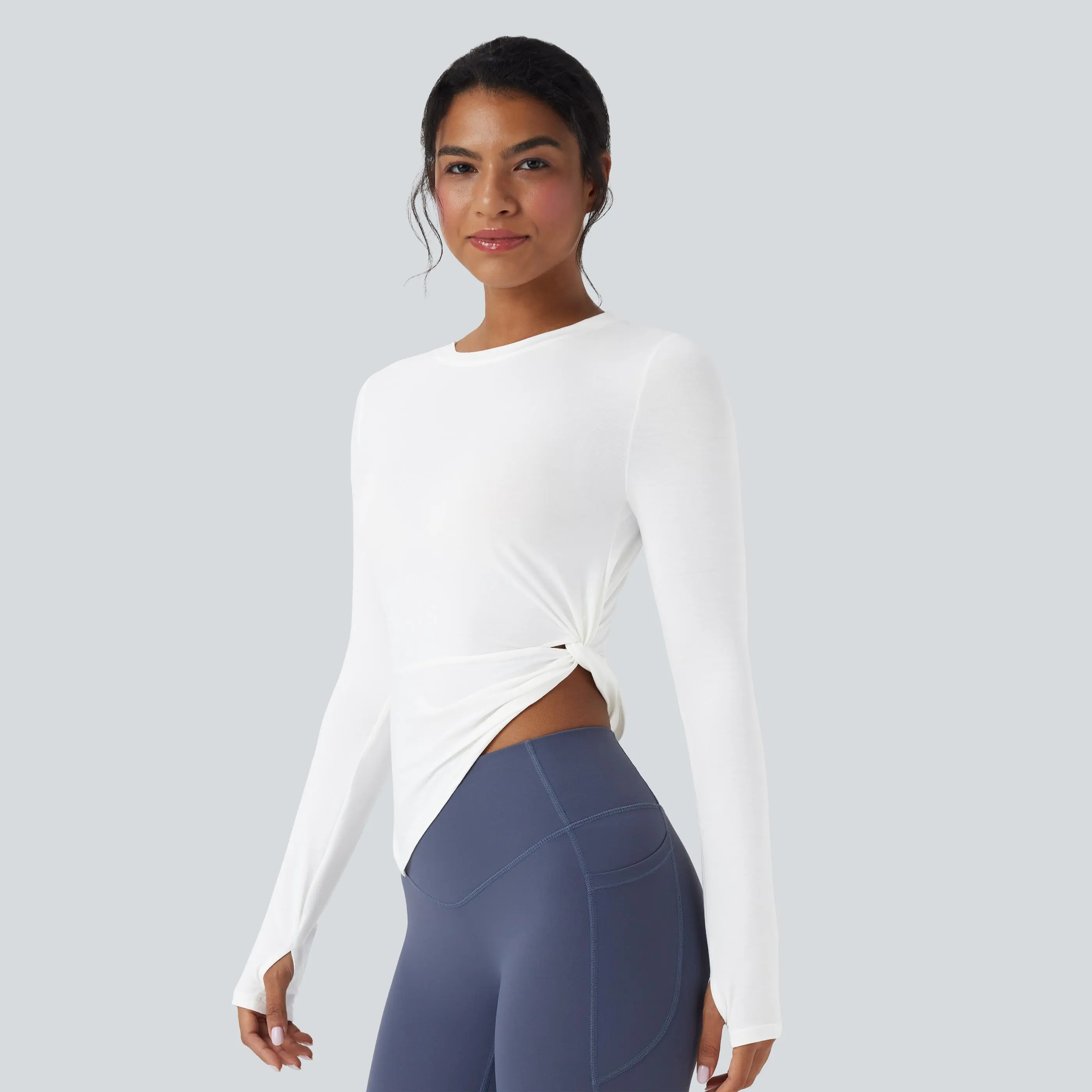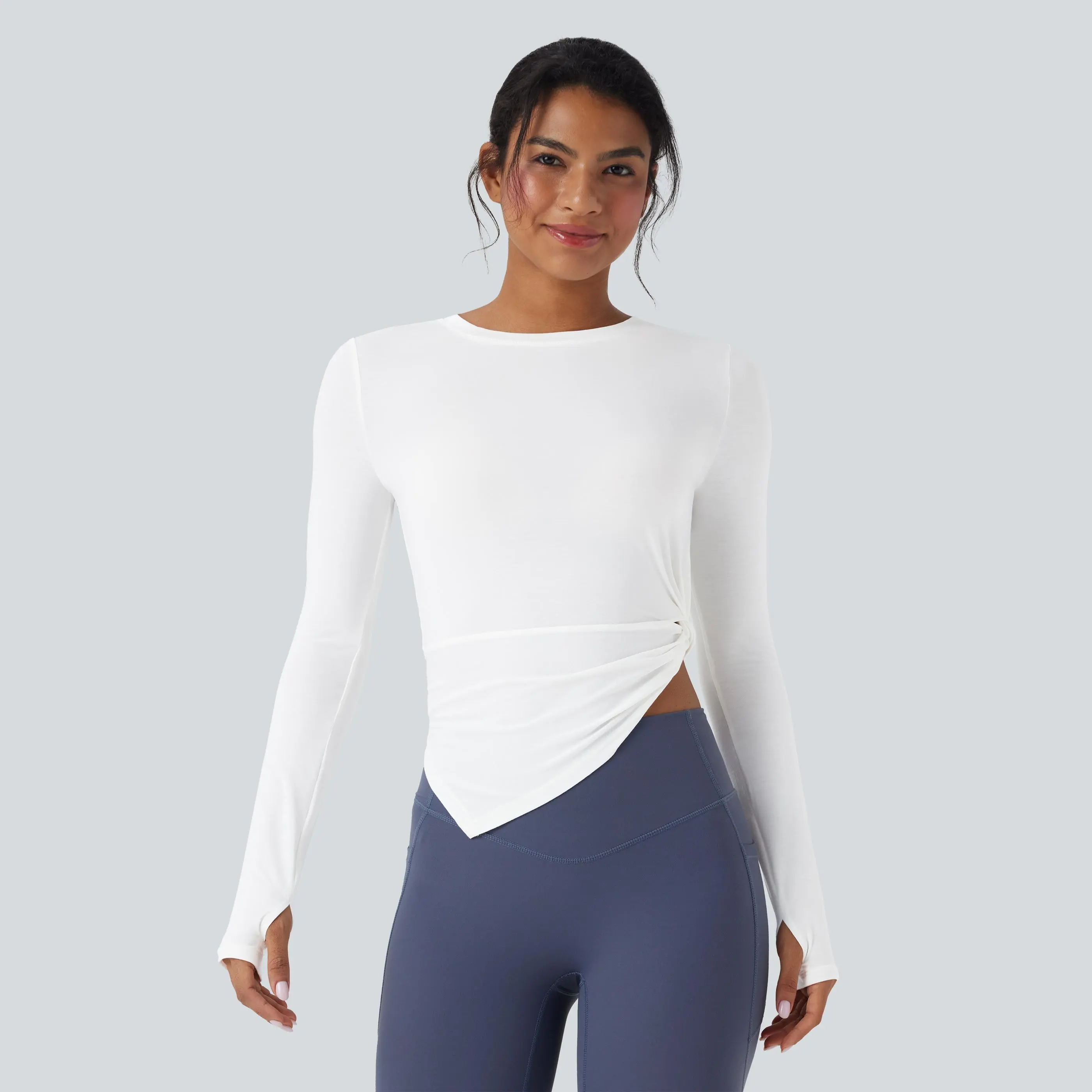 5. Halara Long Sleeve Thumb Hole Asymmetric Quick Dry Yoga Sports Top