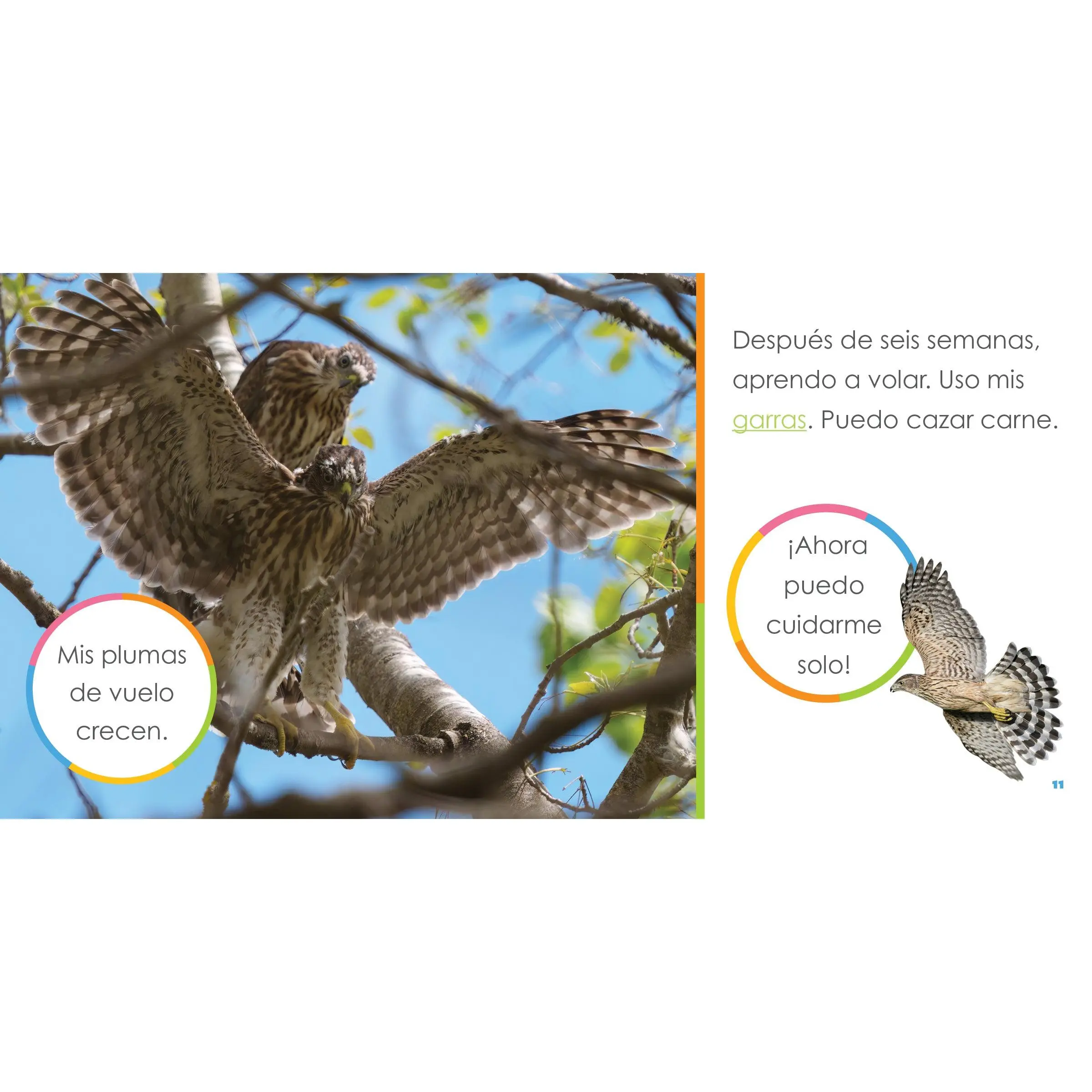 Start down the road to the captivating, soaring world of baby hawks! Through the lens of a curious child, this life science book from Creative Education’s Starting Out series is a visual treat for beginning readers, featuring vivid photographs and a labeled animal diagram that adds fun and excitement to learning. In the “Make a Noise” section, kids can even engage by mimicking sounds of these birds of prey. Simple North American Spanish text and an easy-to-use glossary help inspire a lifelong passion for discovery and knowledge.