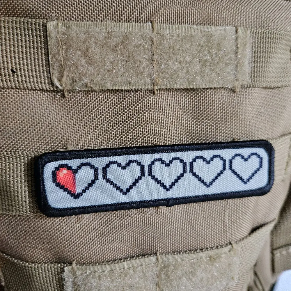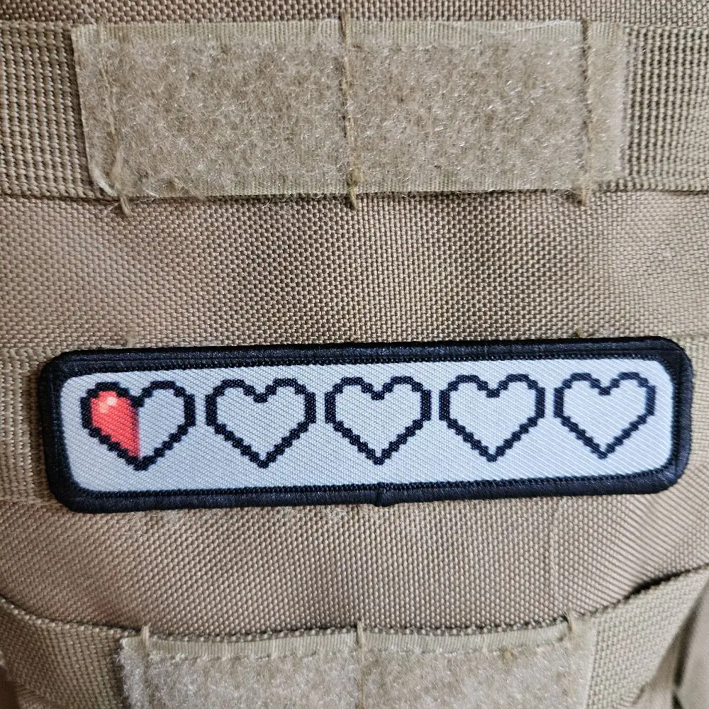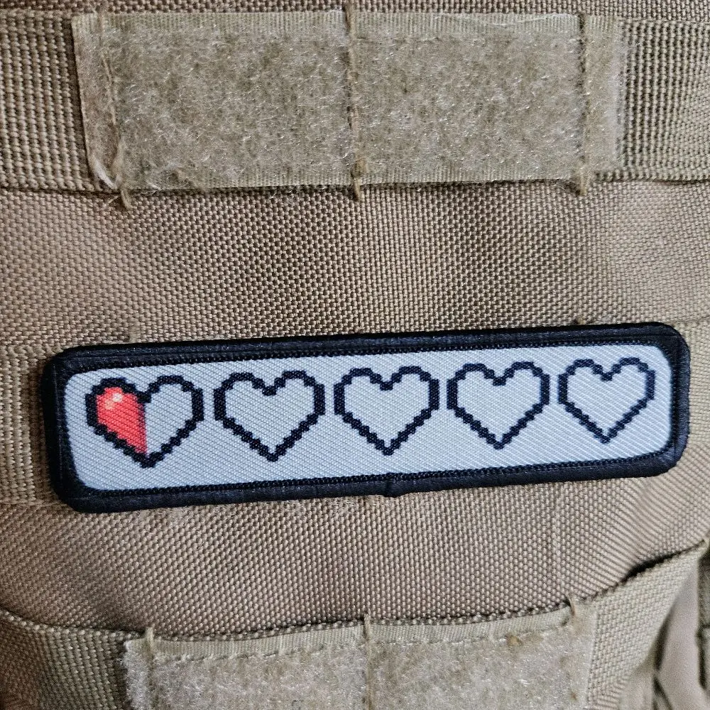 half a heart left 16 bit meme 1"x4" morale patch with hook and loop backing military joke meme Design
