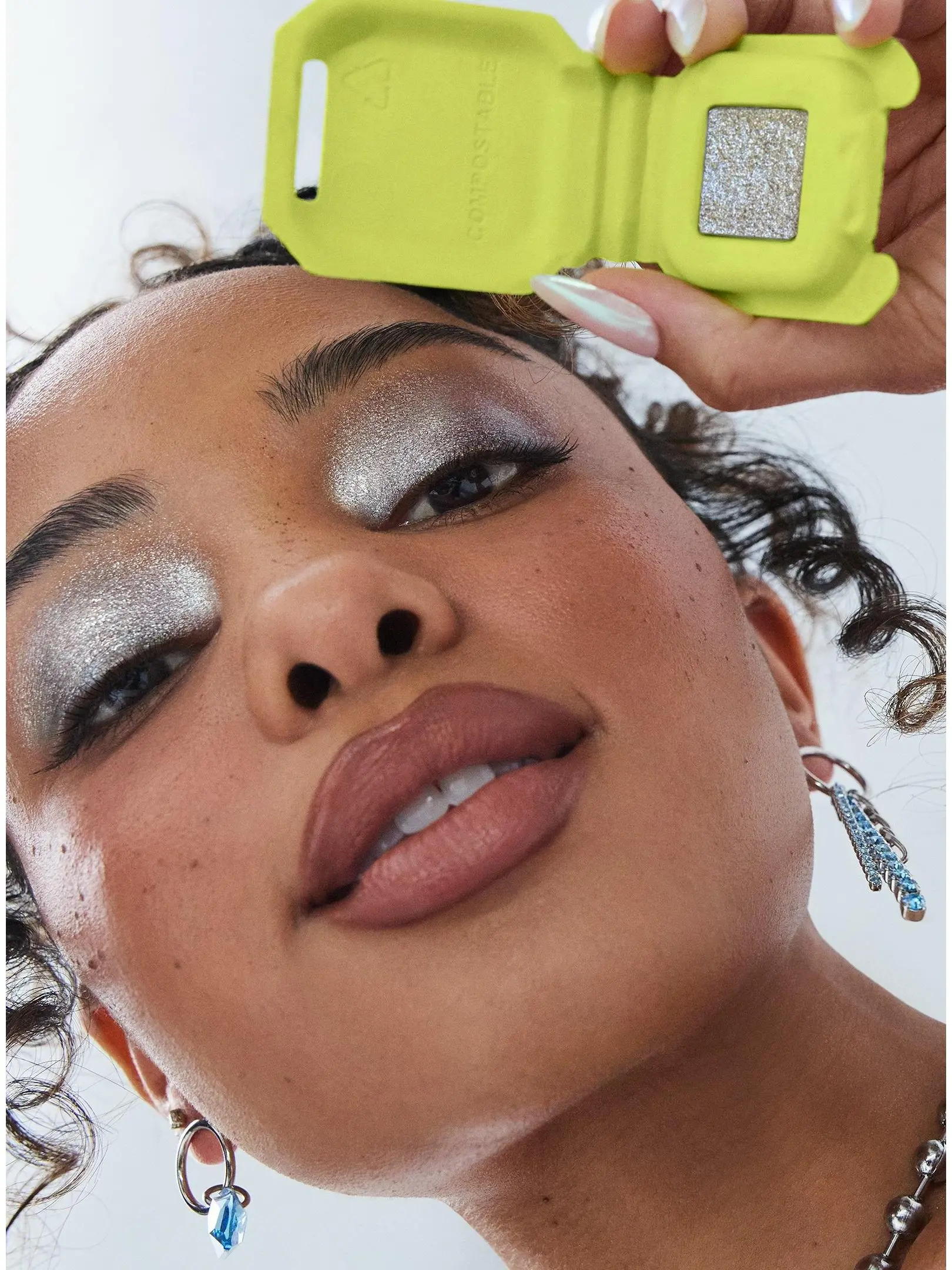 ·Compostable Compact: Each eyeshadow comes in a pocket-sized, first-of-its-kind, compostable compact. 🌿