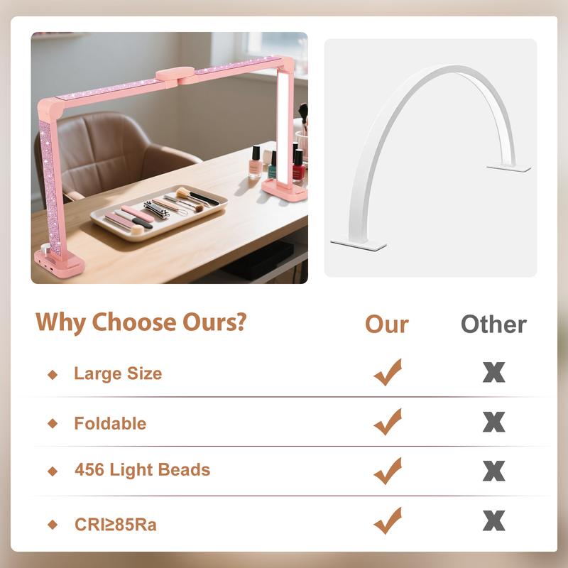 ·Wider Illumination Range: This 34-inch nail lamp measures 33.46 x 2.17 x 16.34 inches, which is larger than other half-moon lamps and provides a wider illumination range. The lamp consists of 456 light beads, providing you with a brighter environment.