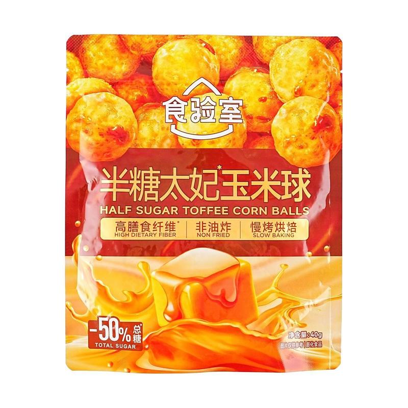 Food Laboratory Half Sugar Toffee Corn Balls - 40g, Low Sugar, High Fiber, Baked Not Fried, Crispy & Rich Flavor Snack