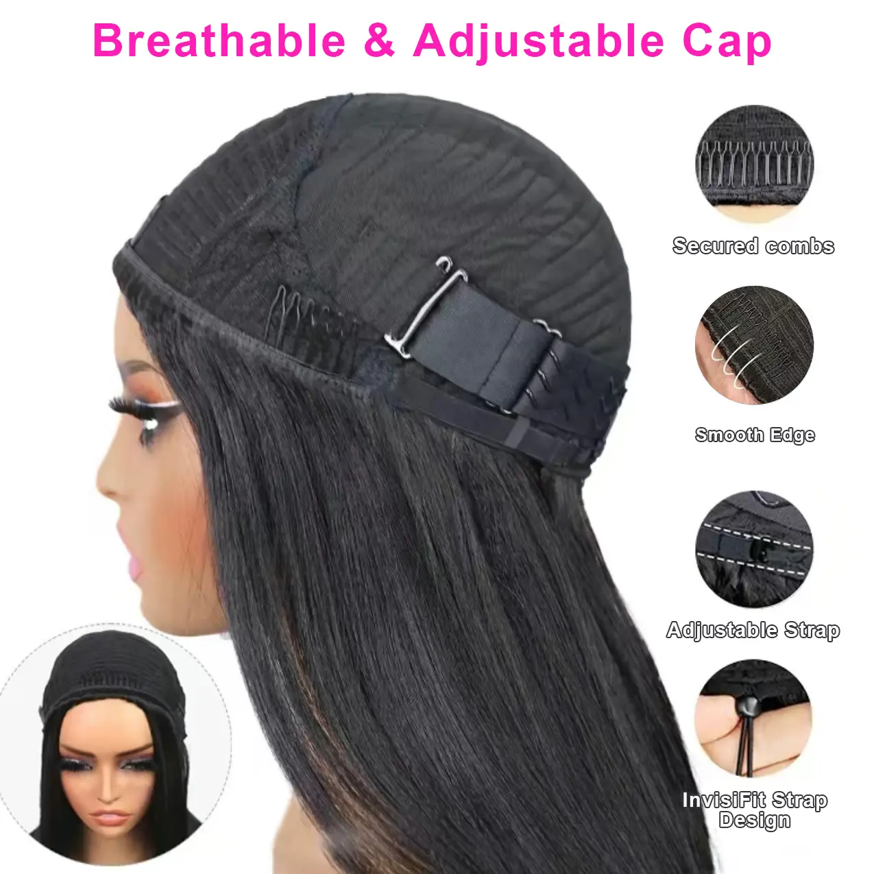 Hair is as described. Fits perfectly and I love the adjustable string to fit to your head size.