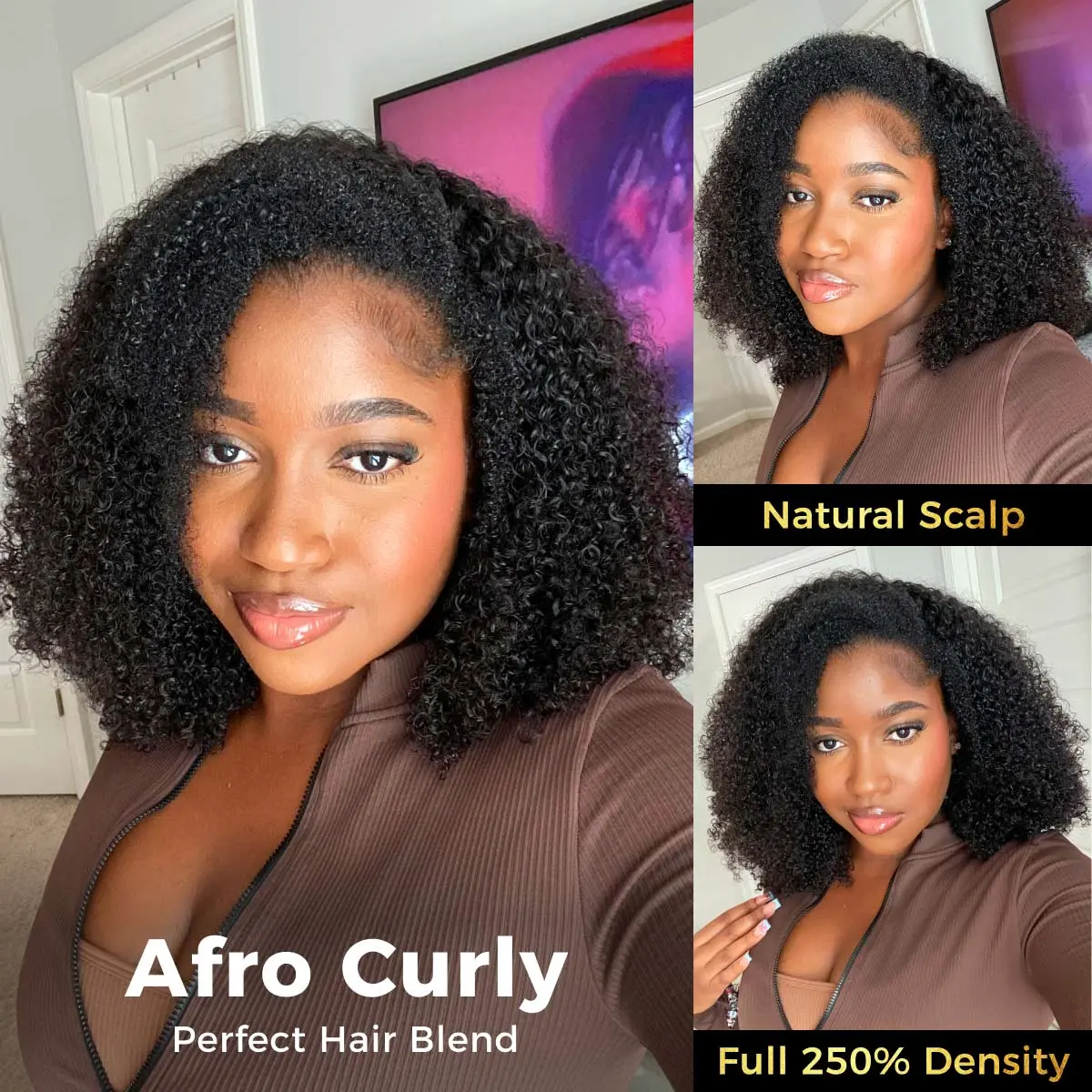 Love this wig down! Super full and soft! I got the Afro Curly 20”, 250 density wig. And the texture blends perfectly with my 4C hair. I style it exactly how I would my natural hair and it gives everytime! Be aware of the shedding when purchasing, but know… the looks will be undefeated.