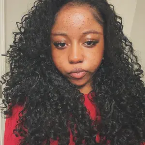this hair is just gorgeous !! and the blend is really good for my hair , i havenāt experienced any tangles fr but obvi its curly hair and synthetic !! but it amazing ā¤ļøā¤ļø