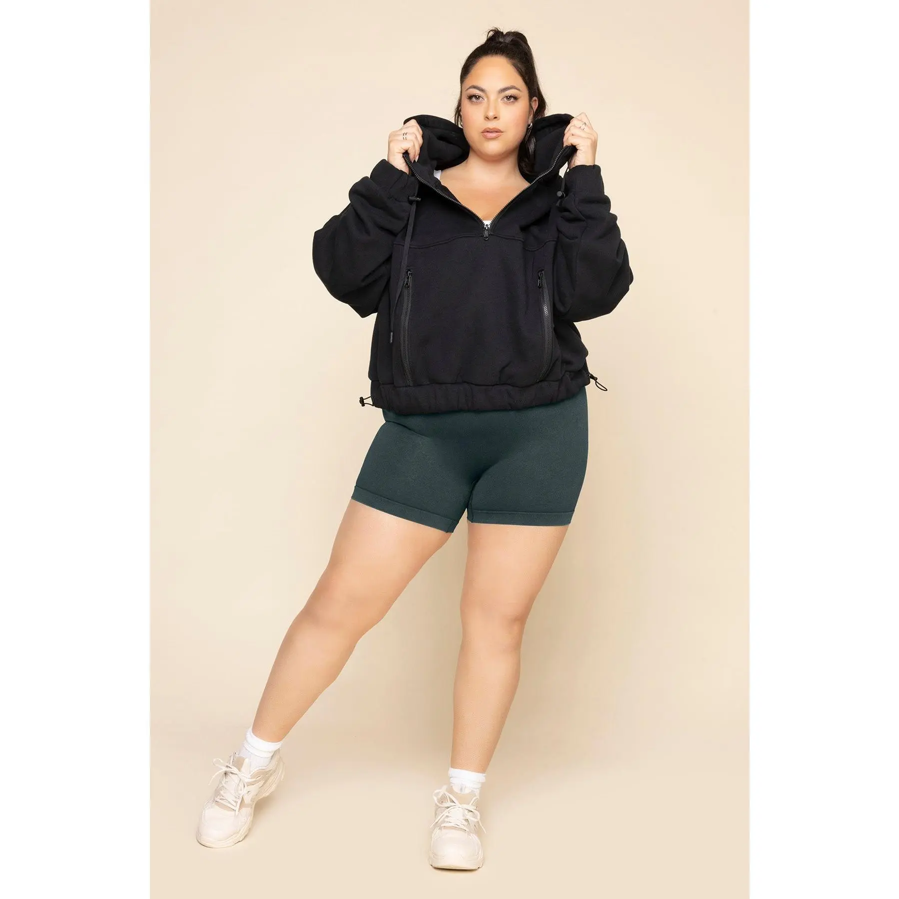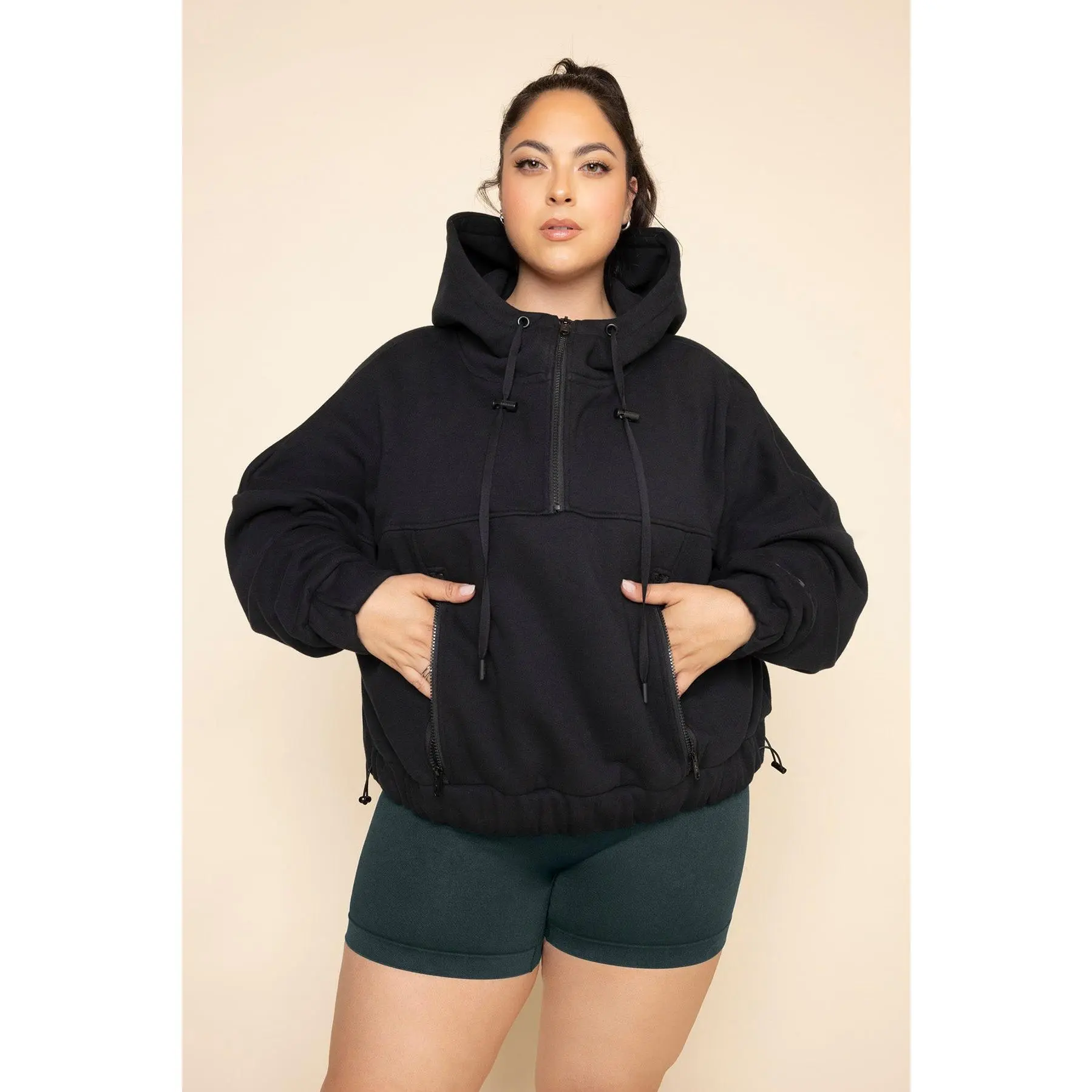 If you live in hoodies once the weather drops, this one’s about to ruin every other sweatshirt for you. The Half Zip Warm Up Hoodie from @POPFLEX Active feels like wrapping up in a plush blanket but looks so put together. The adjustable hem lets you cinch it tighter or wear it loose, and the zippered kangaroo pocket is big enough for your phone, keys, or snacks. It’s oversized without looking sloppy, perfect for chilly morning coffee runs or layering up before the gym. I’d call it my fall and winter uniform at this point. #fallfashion #winterfashion #tiktokshopblackfriday #tiktokshopcybermonday #midsizefashion  Popflex Half Zip Warm Up Hoodie | fall outfits | winter fashion | oversized hoodie | cozy sweatshirt | black hoodie | zip up hoodie | athleisure | women’s loungewear | cold weather outfit | comfy travel outfit | plush hoodie | gym to street style | everyday layering piece