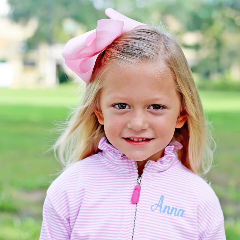 Shipped SO fast! My only regret is not getting it monogrammed. It’s light weight, the sweetest light pink color, and perfect for the girliest of girls! I ordered slightly bigger on purpose in hopes to get a couple seasons out of it. So happy with my purchase.