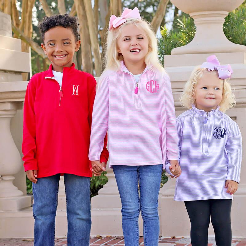 Great weight for layering. Monogram helps from being picked up accidentally when child pulls off.