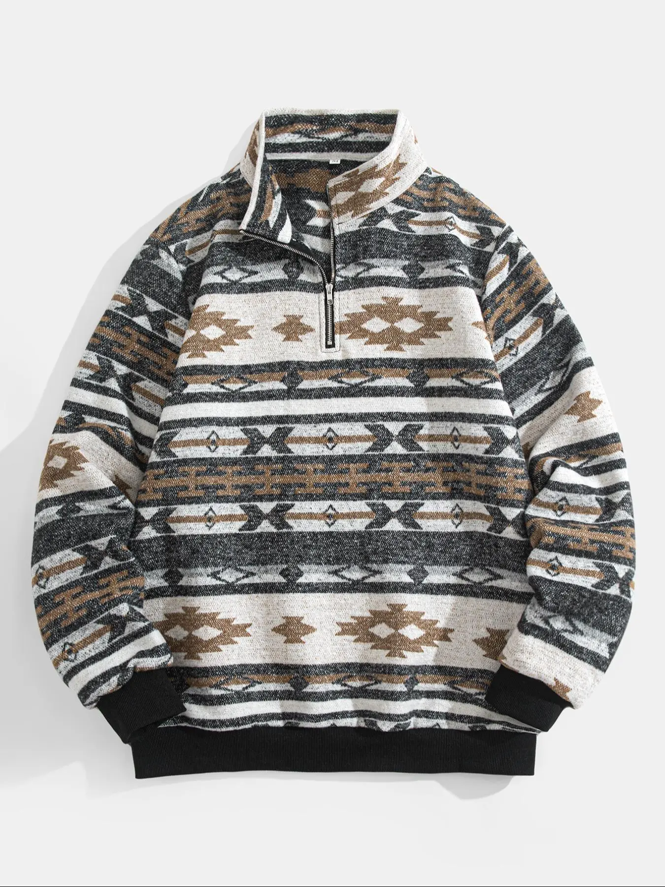 Men's Ethnic Pattern Half-Zip Mock Neck Jacket, Loose Casual Long Sleeve Zip Front Outerwear for Winter, Men's Winter Clothes for Daily Wear, Zippered Jacket