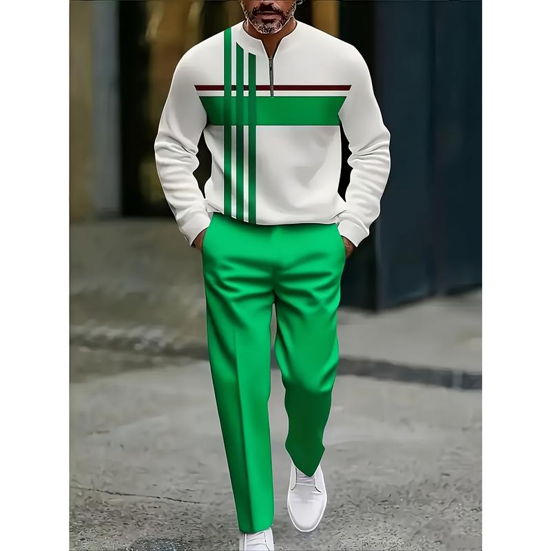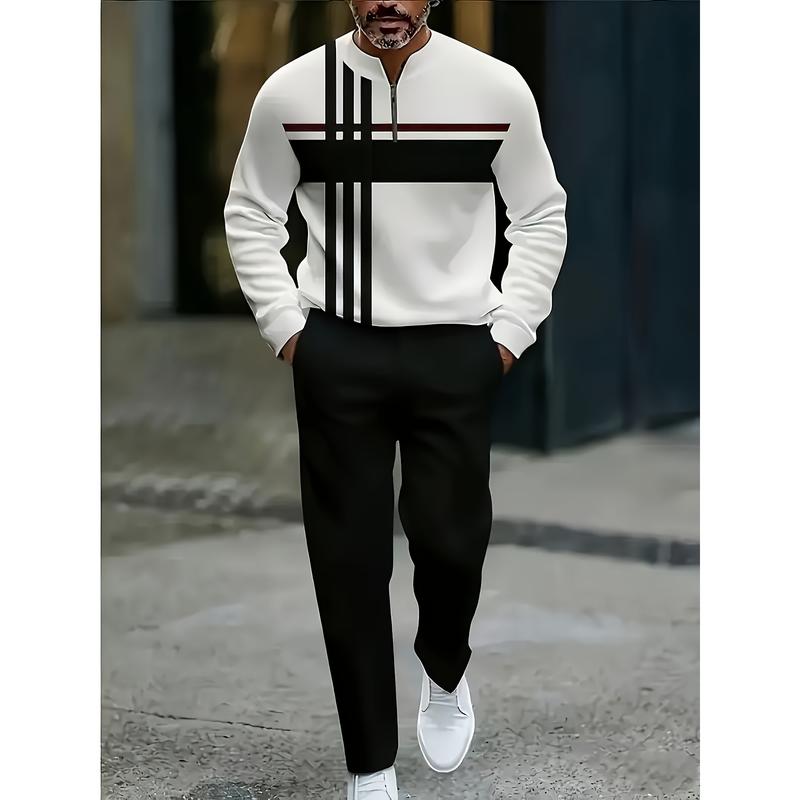 This set features a stylish half zipper design with a trendy and personalized stripe pattern. Perfect for those who love a unique and fashionable look. The design stands out with its bold stripes, making it a standout piece for any casual ensemble. 🌟