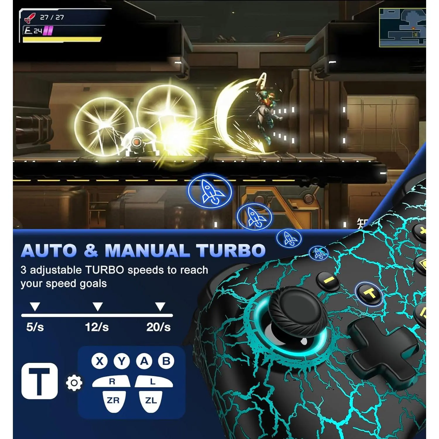 Unique Cracked Design & Custom Lighting Effects: Your switch controllers will have adjustable LED lights in 6 different colors, You can switch the color you like at any time. If you choose red, its effect will be like hot "magma"; If you choose blue, it will be like a brilliant lightning! Buy it now, light up your favorite light in the night, you will be the coolest among your friends