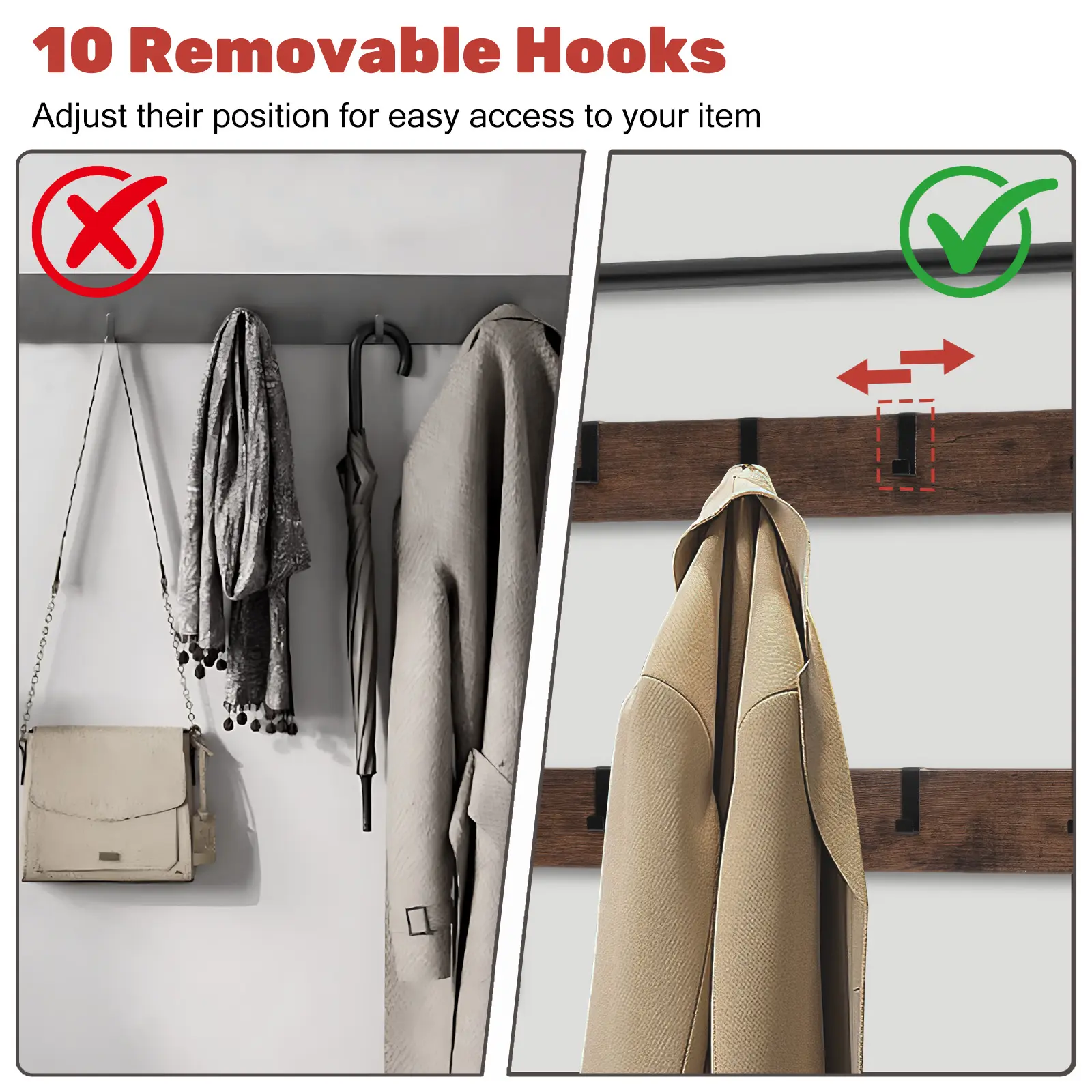 ·The 9 hooks in 2 rows are removable, allowing you to change their position for items of varying sizes. Crafted with robust, rust-resistant metal, they can withstand the test of time. Ideal for hanging various items.