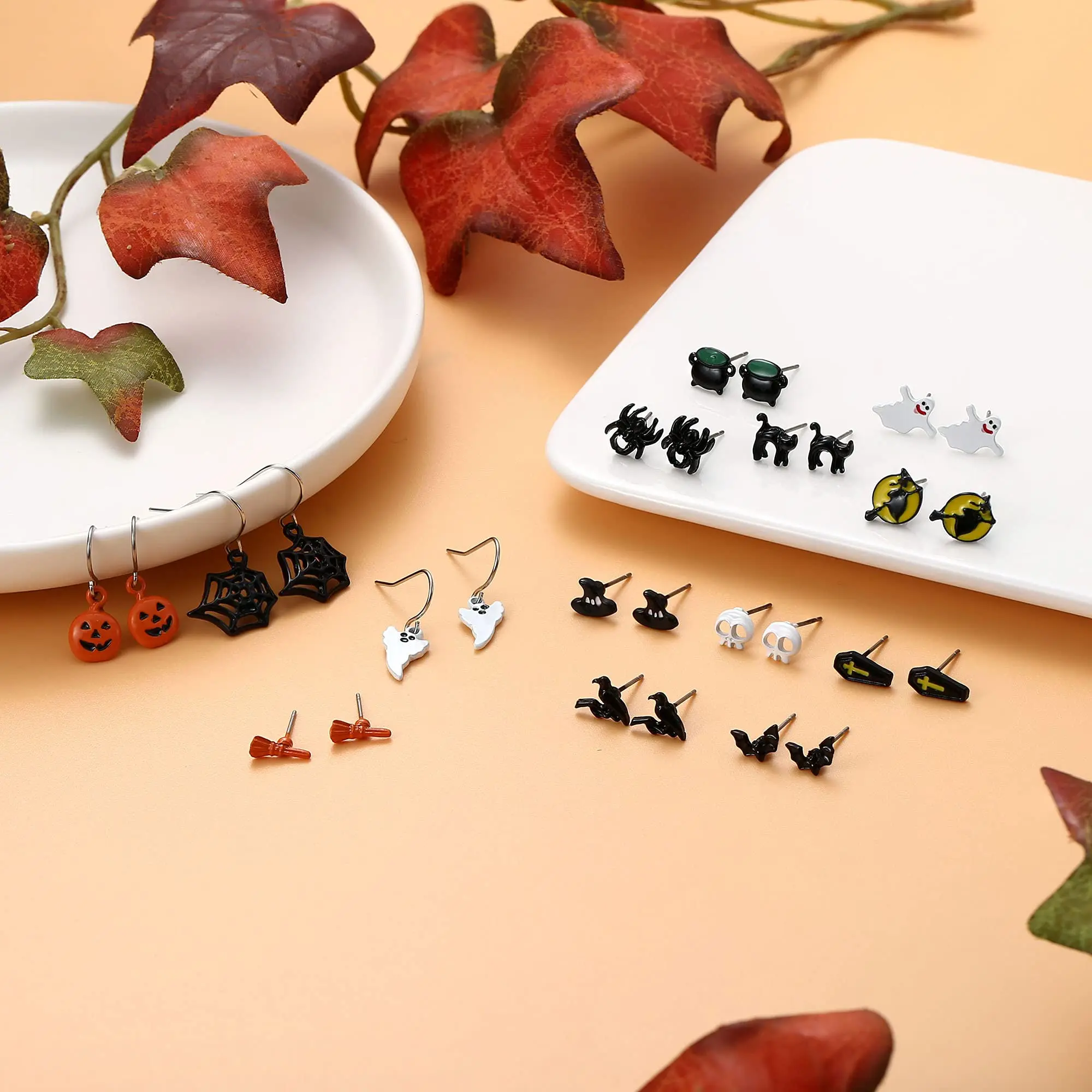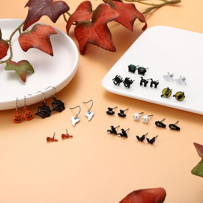 5. Milacolato 20 Pairs Halloween Earrings Set for Women Teen Bat Cat Witch Stud Earrings Spider Web Pumpkin Ghost Drop earrings Halloween Jewelry