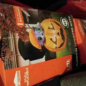 ·Excellent Design. This 5ft Tall Halloween Inflatable Animated Cat On Pumpkin is the Perfect Decoration for your Halloween. It has an animated body to automatically pop up and down in the pumpkin. This inflatable comes with an extended cord, ground stakes, fastened ropes, built-in sandbags, and a plug with UL certification. These features help secure the inflatable animated cat in pumpkin in place, preventing it from being blown away by wind outdoors.