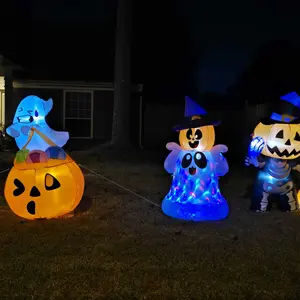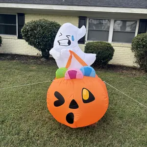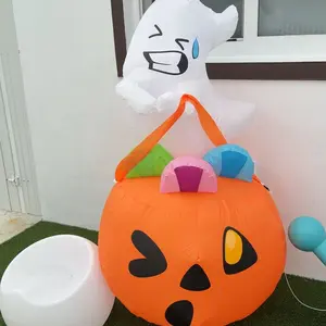 ·Excellent Design. This 5 ft tall Halloween Ghost Lift Pumpkin Candy Bag inflatable is the perfect addition to your Halloween night. It is an amazing Halloween decoration, you can place it in the yard, garden and lawn. It brings a lot of fun to your Halloween holiday. This inflatable comes with an extended cord, ground stakes, fastened ropes, built-in sandbags, and a plug with UL certification. These features help secure the ghost in place, preventing it from being blown away by wind outdoors.