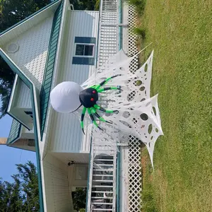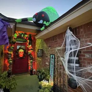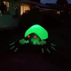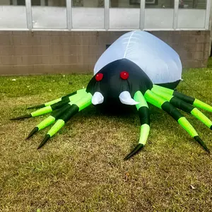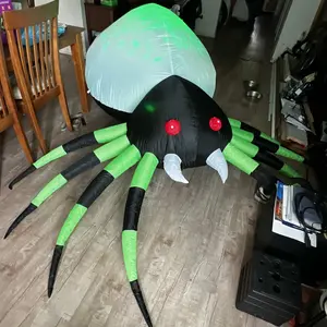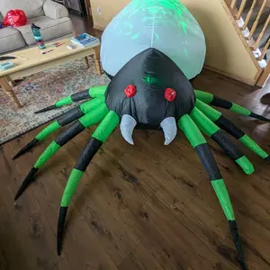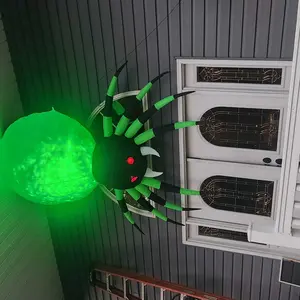 ·The halloween inflatable spider features built-in cool LED green lights, making it look real and scary. It has red eyes, long fangs, black and green legs, and an attractive lifelike appearance. Perfect for making your home stand out during Halloween!