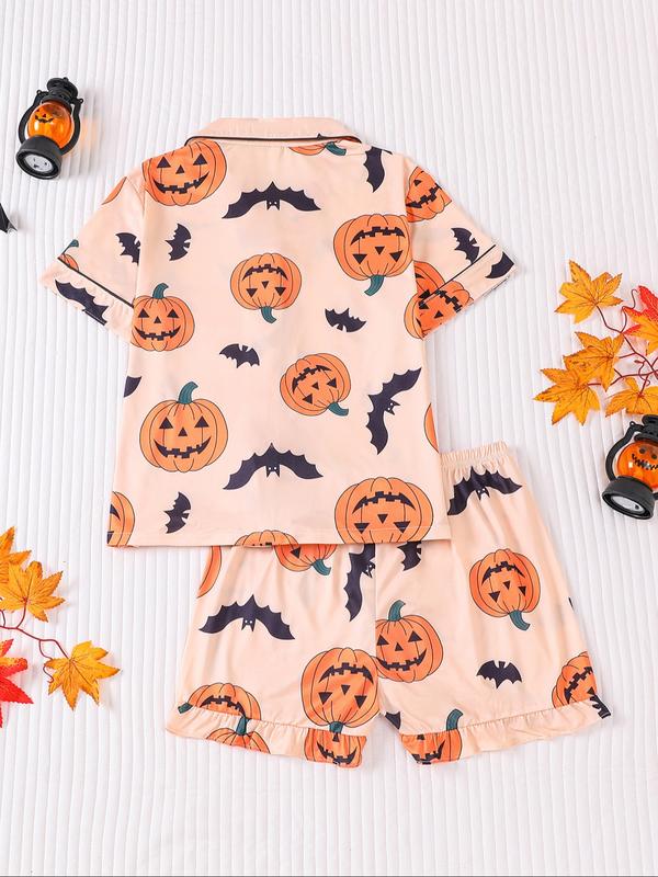 5. Halloween Children's 2-Piece Pajamas Set, New Halloween Bat Pumpkin Head Ghost Star Cardigan Short Sleeve Shorts,'s Medium and Large Pajamas for Party, Daily Wear, Vacation Home Clothes 2-Piece Pajamas Set