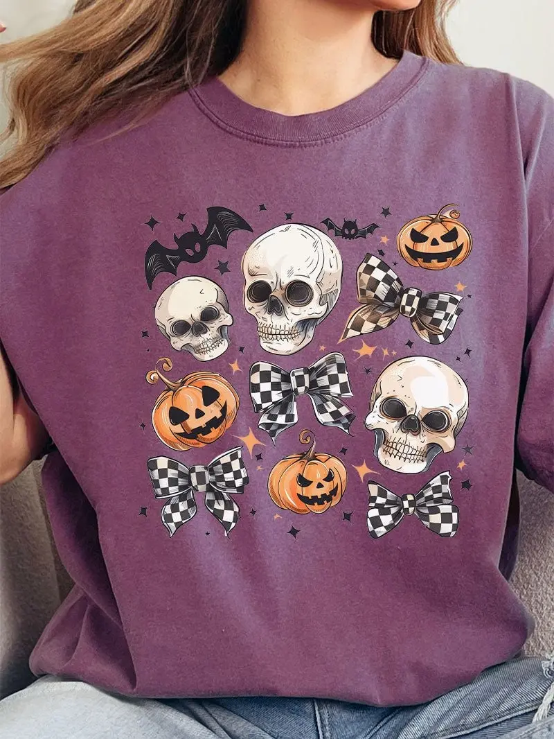 'Tis the season for Halloween! Get ready to celebrate with a unique Comfort Color tee. Choose your category, and we'll surprise you with the color and design. Options include Pumpkins, Skeletons, Ghosts, Horror, Complete Mystery, and Cutesy. The Complete Mystery could be anything exciting! This DTF print is high quality and a fun, less scary option.