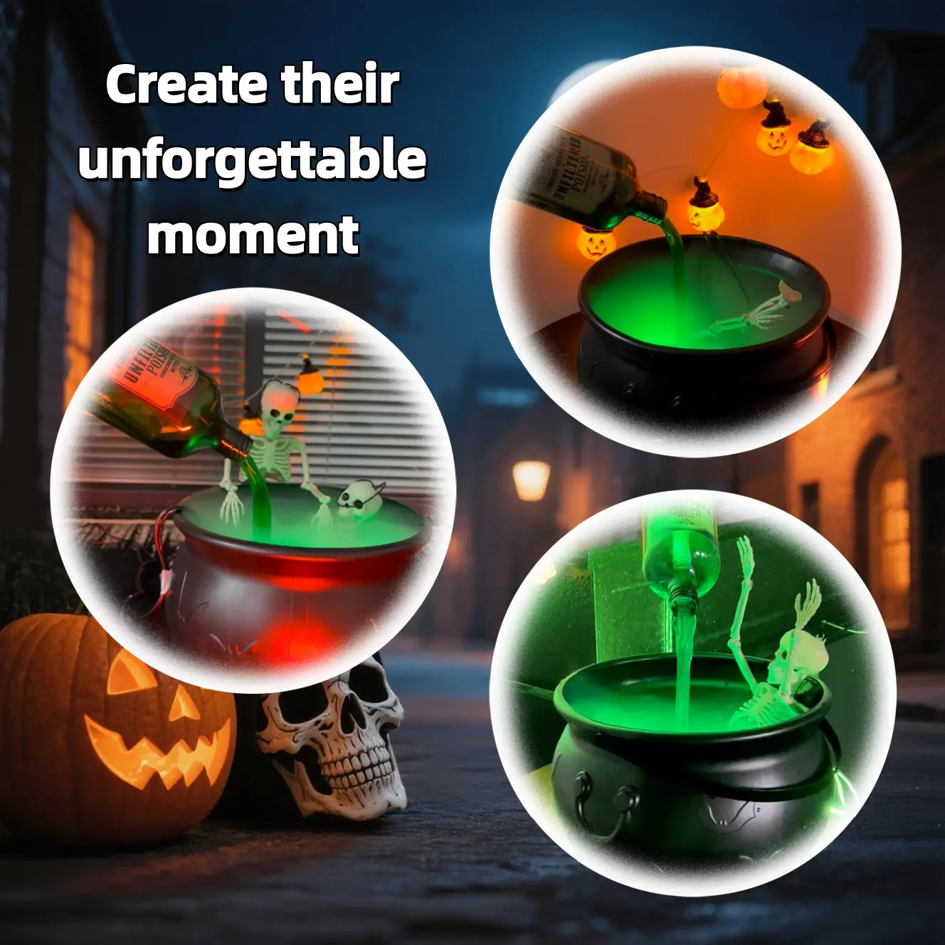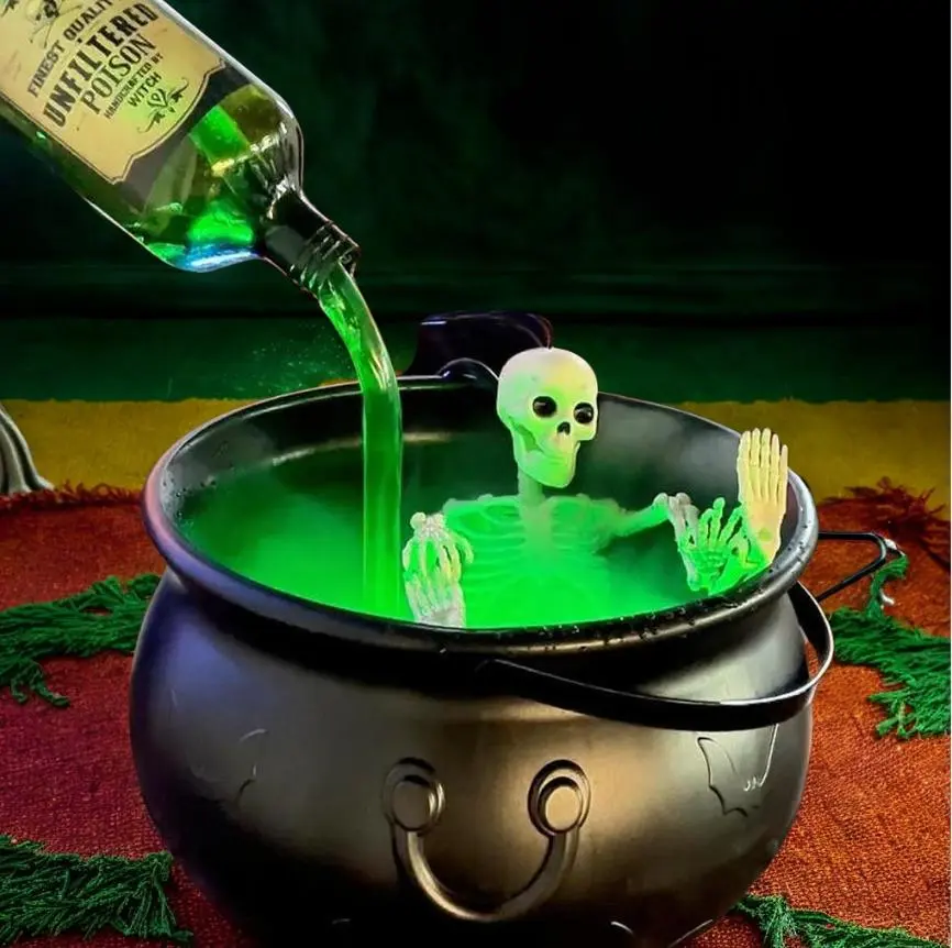 This cauldron comes with a striking black plastic witch's bowl, a timeless symbol of Halloween. You can fill it with corn syrup, chocolate eyeballs, or other spine-chilling candies to delight guests of all ages.