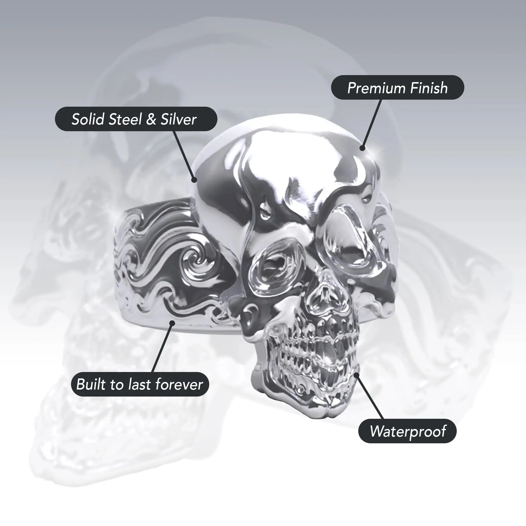 As detailed as the picture. Good price for such a good quality ring. Lots of compliments, lots of swag. Fits amazingly well thanks to the free ring sizer they threw in my order when Black Friday was going on. Does not turn my fingers green. Love their unique packaging. Got the lowrider pendant too and put it on my carabiner.