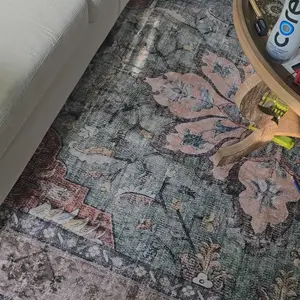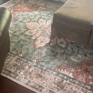 Printed Rug Design: Vintage Style. Some rug styles feature a faded or distressed look, which is part of the design and not a printing or quality issue.