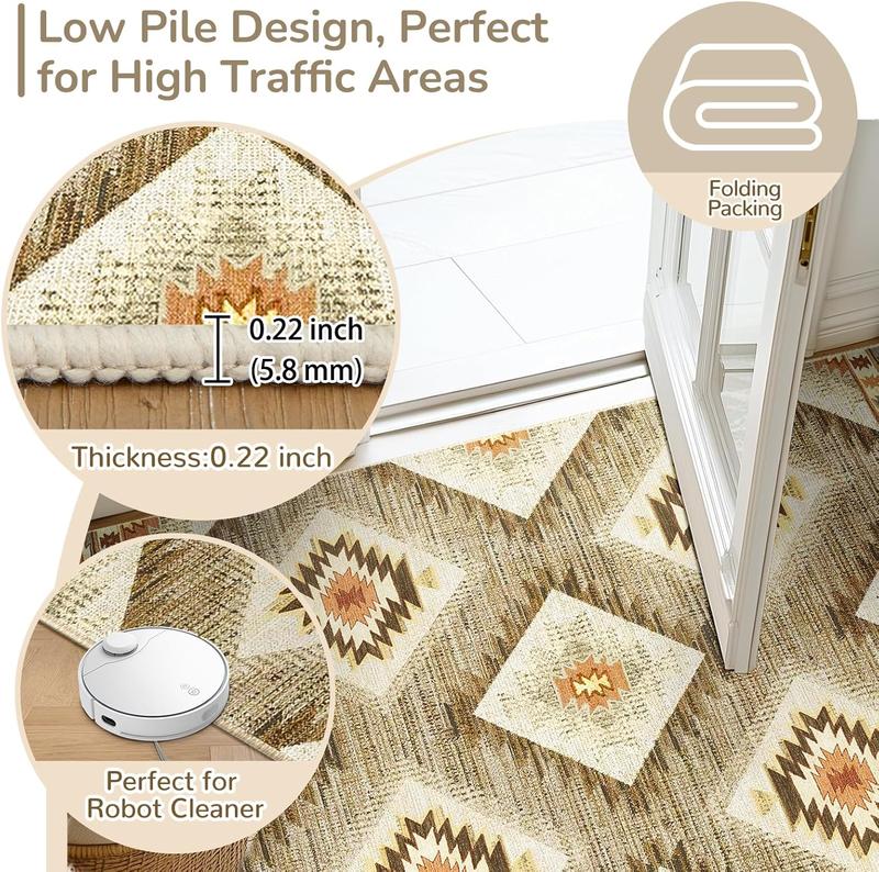 The rugs feature low pile fiber, making them safe for kids and pets. They adopt TPR backing for non-slip safety. No shedding ensures a clean environment. Enjoy a worry-free space with these durable, healthy rugs. Perfect for any room in your home!