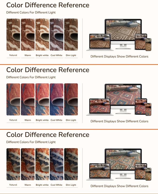Under certain lighting, rugs with black patterns may appear NAVY BLUE. This is a normal visual effect and not considered a product defect. Please refer to the actual product for the most accurate color.
