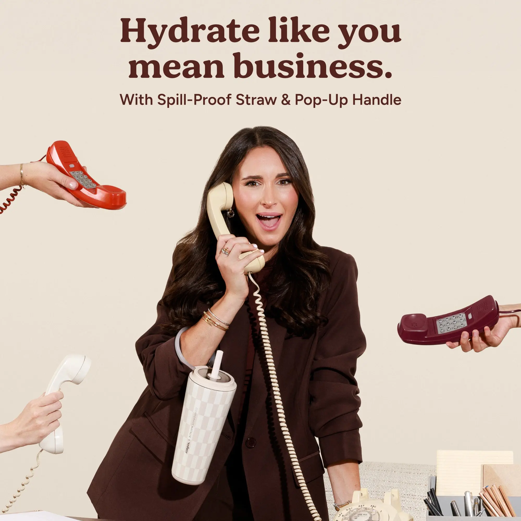 Hands full? Say hello to Halo, our newest hydration arm candy. Halo’s pop-up handle keeps your refreshment in reach, spill-proof straw and all.