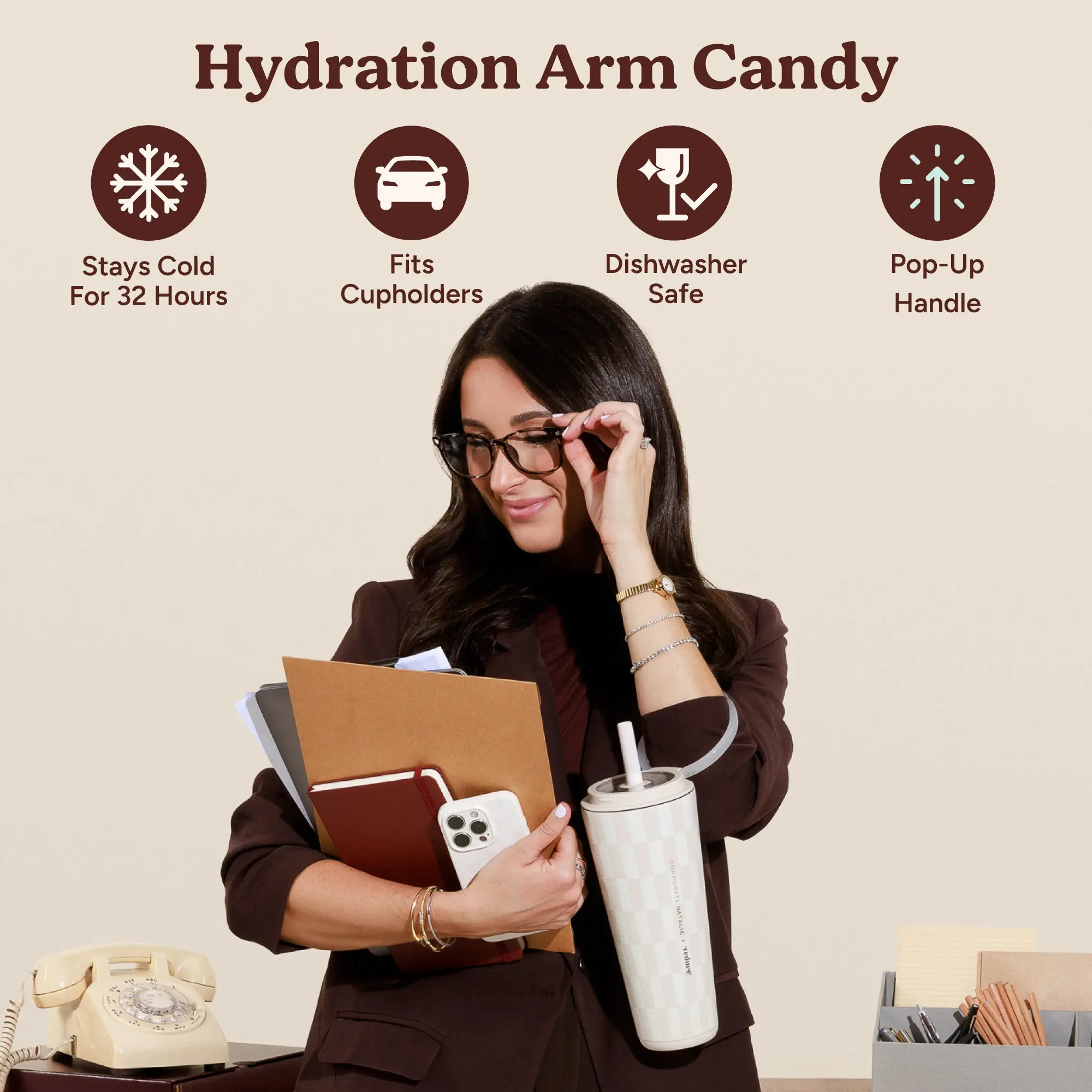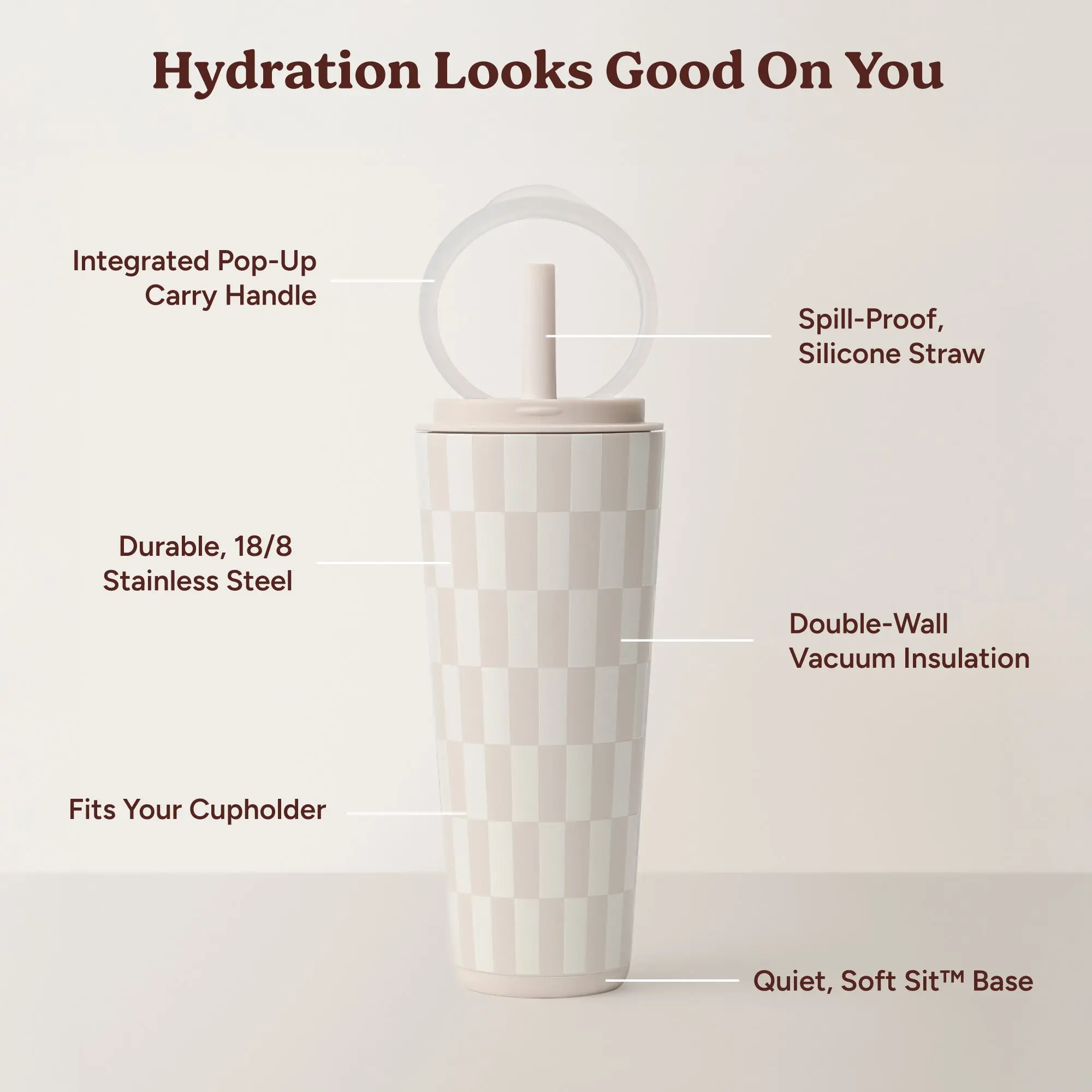 No more juggling your drinkšŸ§‹They really meant it when they said cute & practical can coexist.  #insulatedtumbler #tumbler #checkered #coldcup #cleangirlaesthetic