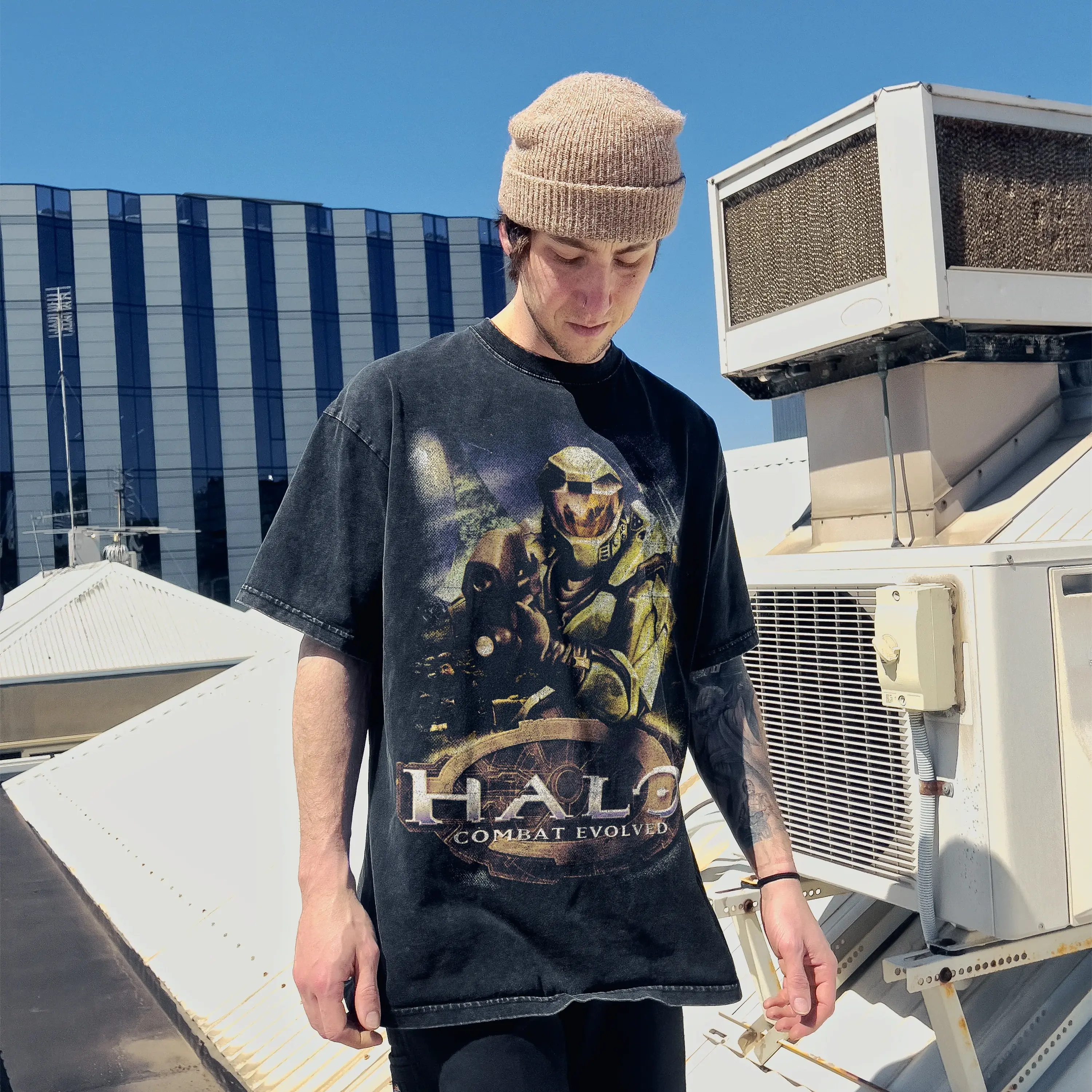 Halo Combat Evolved Oversize Unisex Washed T-Shirt for Women and Men's