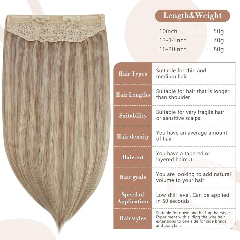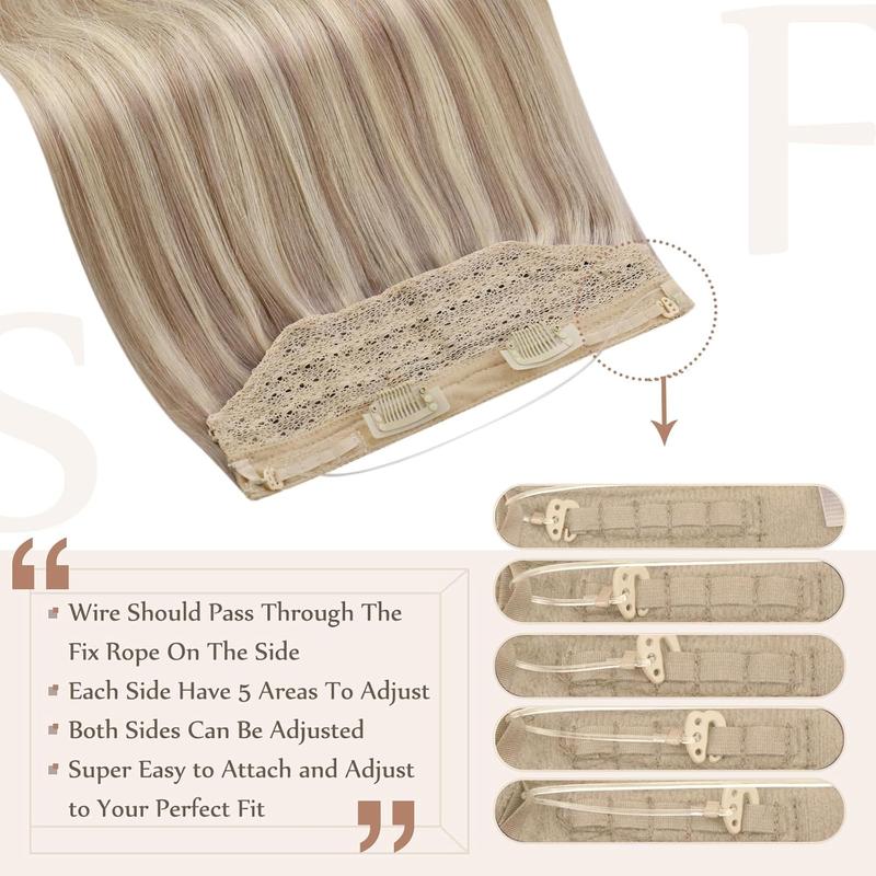 ·【Invisible Transparent Wire】Brown And Blonde Wire Hair Extensions Can Blend Well with Your Hair by The Adjustable Invisible Transparent Wire. Adjust Size by Tightening or Loosening The Fish Wire. Each Package Includes 2 Elastic Fish Lines for Replacement,The Length is 20cm and 25cm.