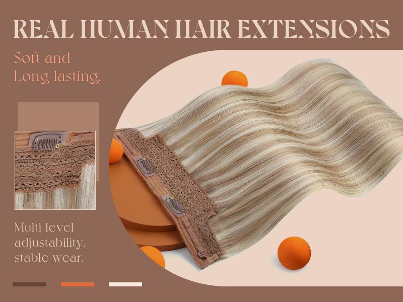 ·Real Human Hair - Soft, Comfortable, and Natural. Experience the luxury of real human hair with our invisible wire hair extensions. Crafted with human hair, it guarantees a soft, comfortable, and natural look. The extensions are held securely in place by a see-through wire and two movable clips, ensuring effortless wearability. Available in lengths ranging from 12-20 inches, you can effortlessly achieve your desired hairstyle.
