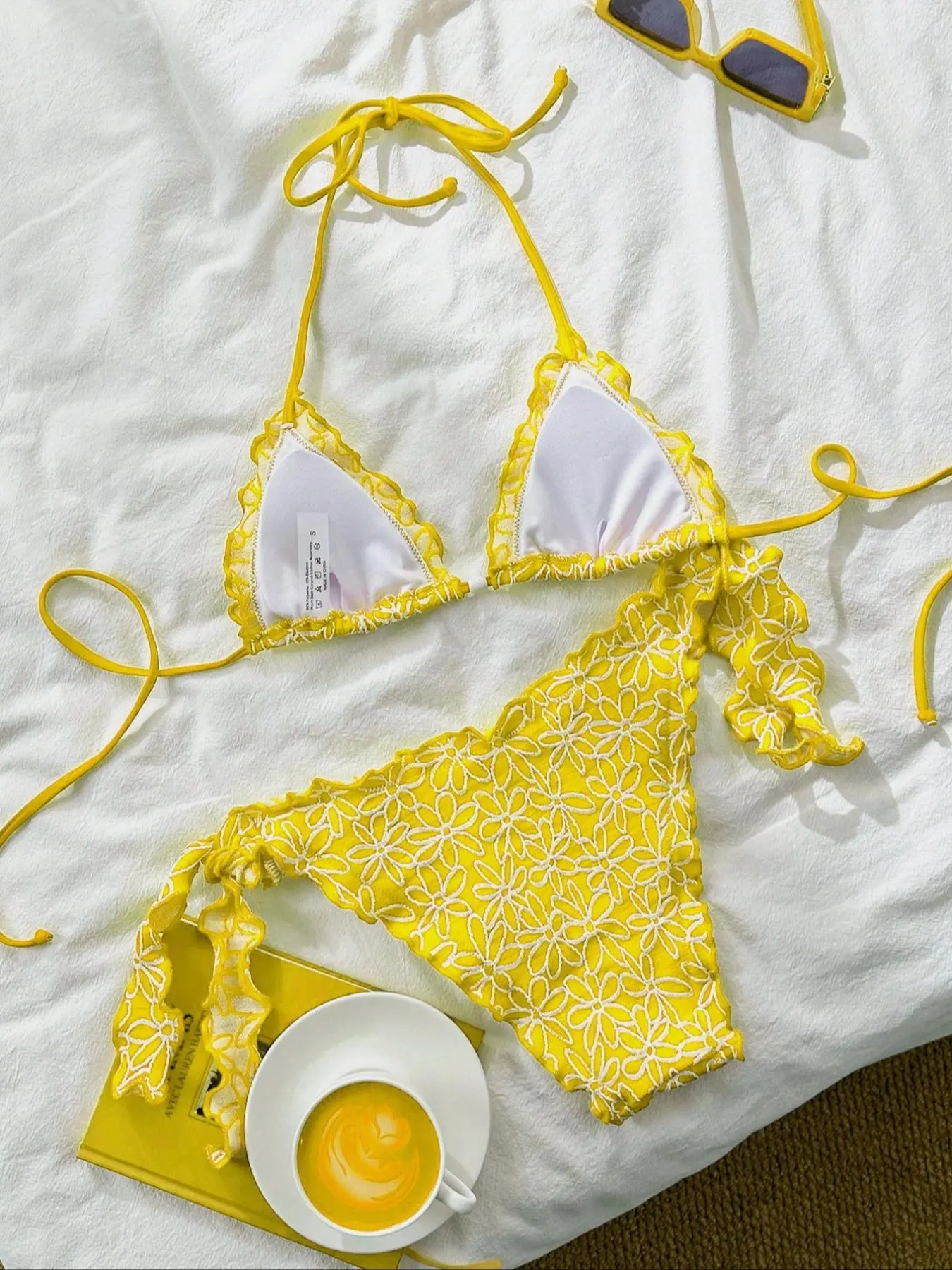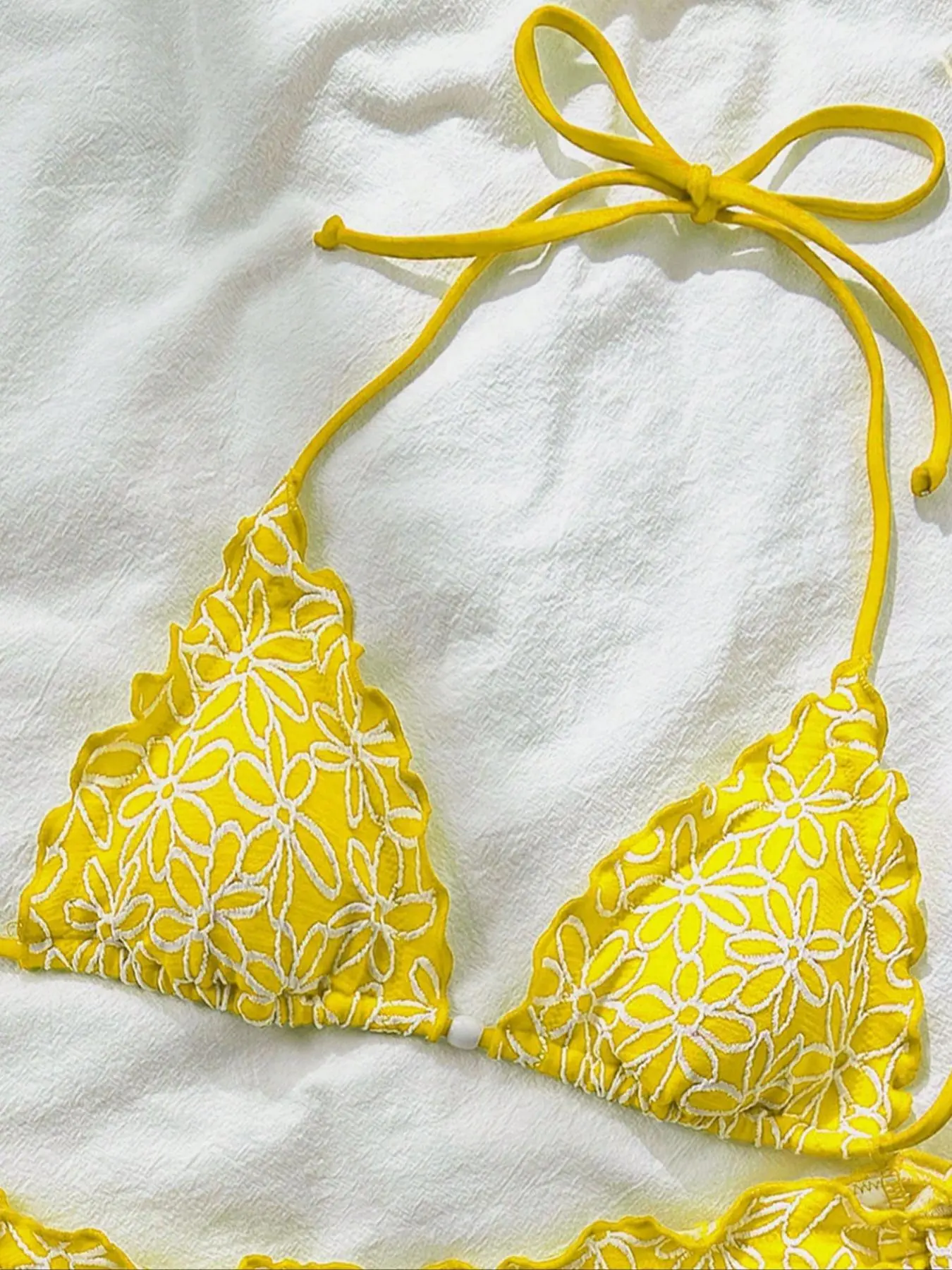 Super cute ruffle triangle bikini. Comes another colors. And super affordable. #bikini #bikiniseason #bikinihaul #millennialmom #momsover30 #tiktokshopfashion #yellowbikini #trianglebikini